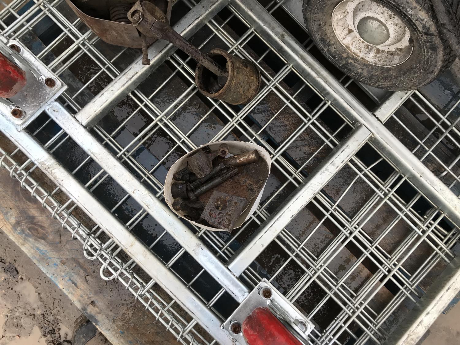 metal wire crate, metal banding