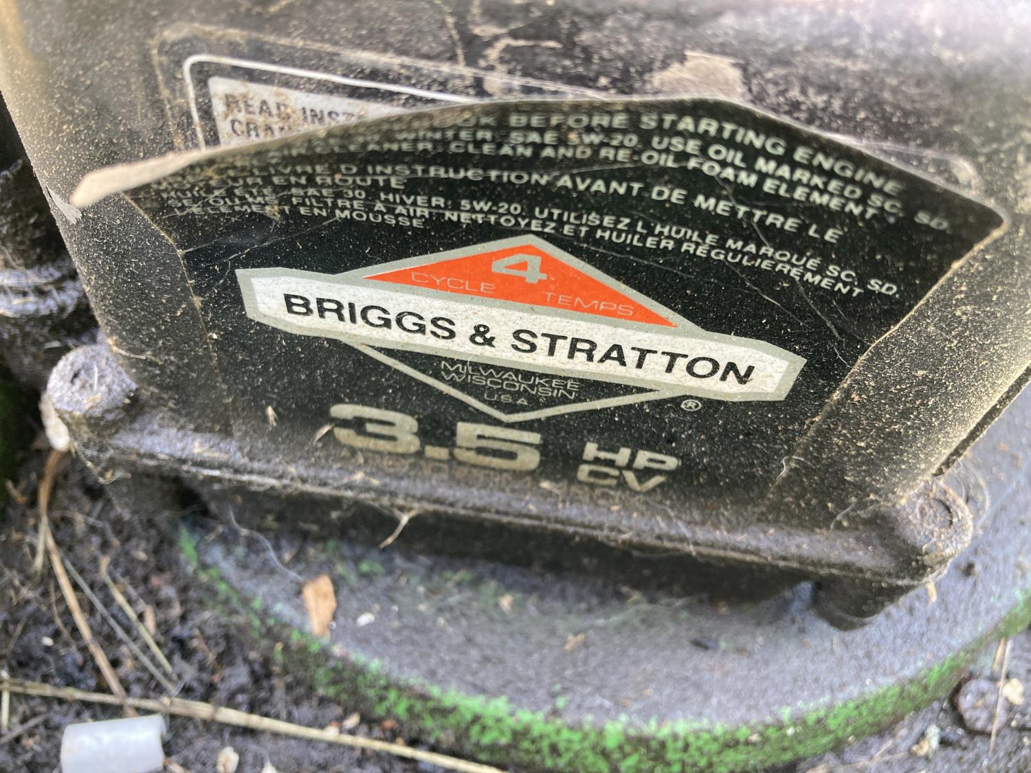 lawn mower 3.5 HP briggs and stratton engine, roto tiller has a 5 HP briggs and stratton engine