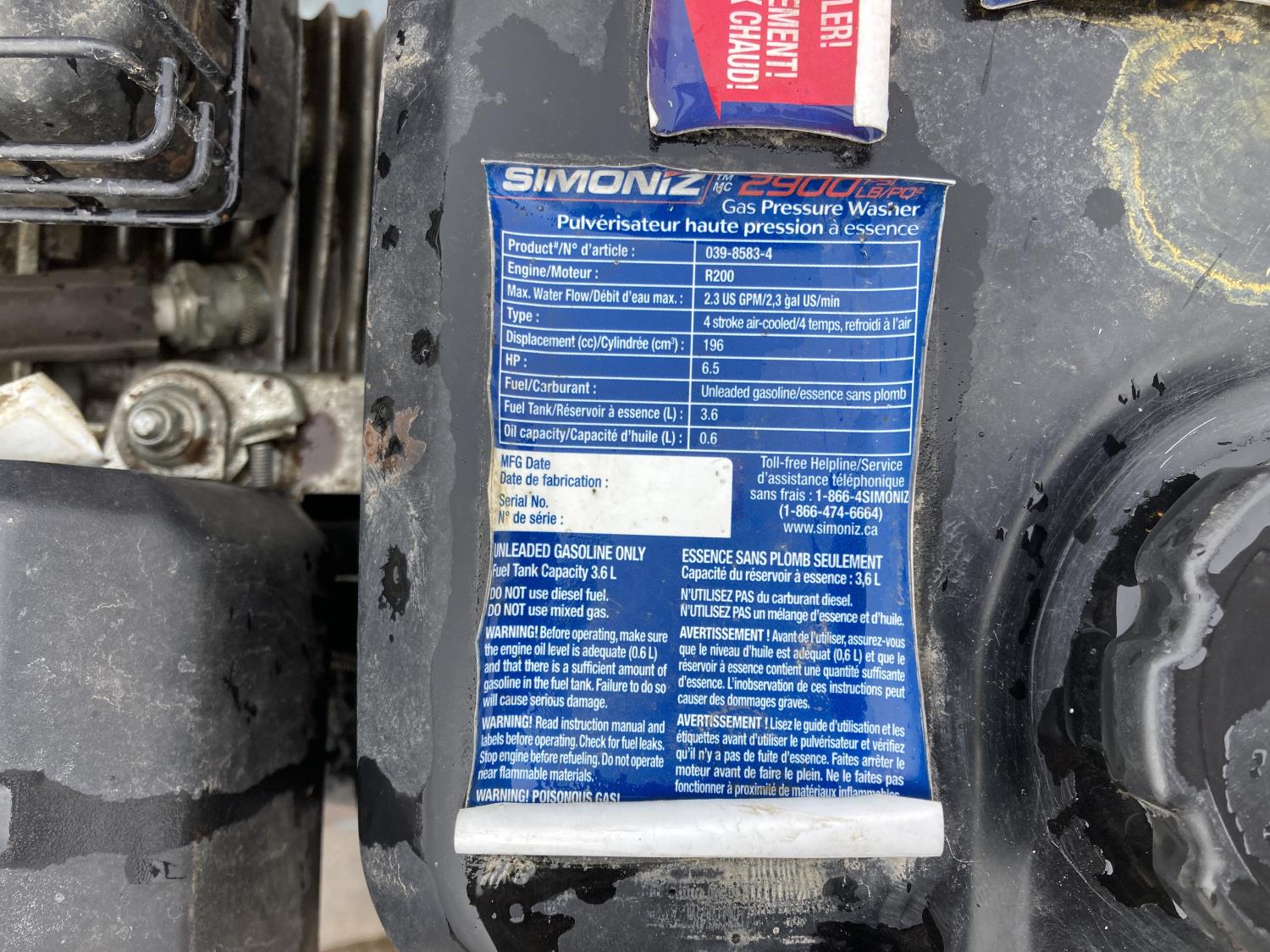 1461 Simoniz 2900 PSI Gas Pressure Washer