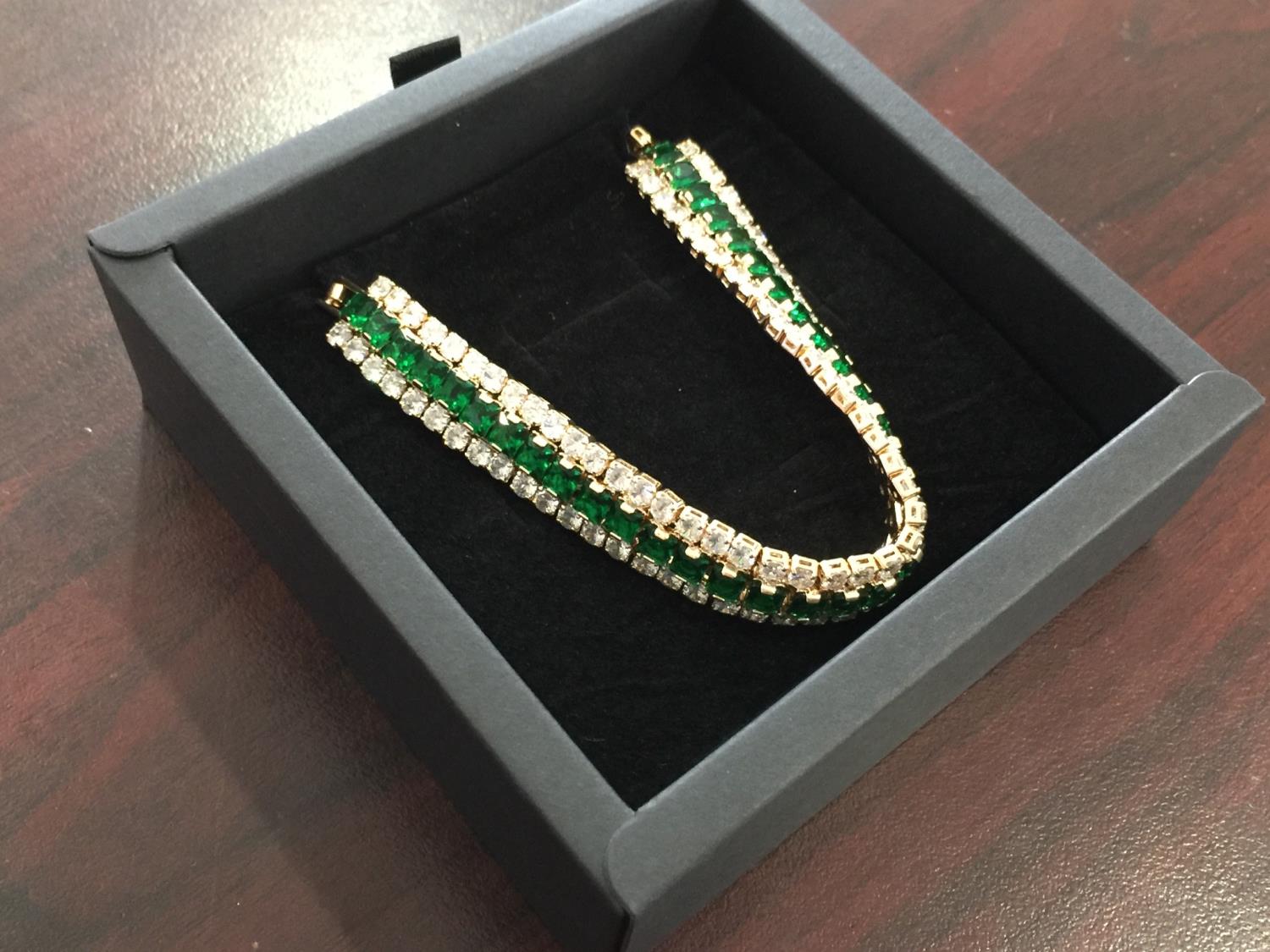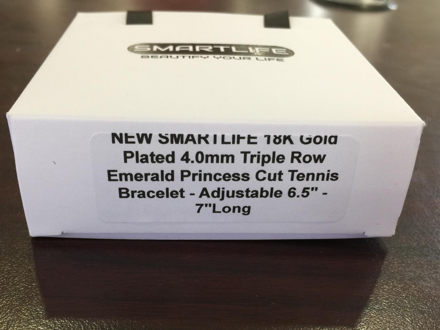1305 Smartlife 18K Gold Plated 4.0 mm Emerald Princess Bracelet (Unused)