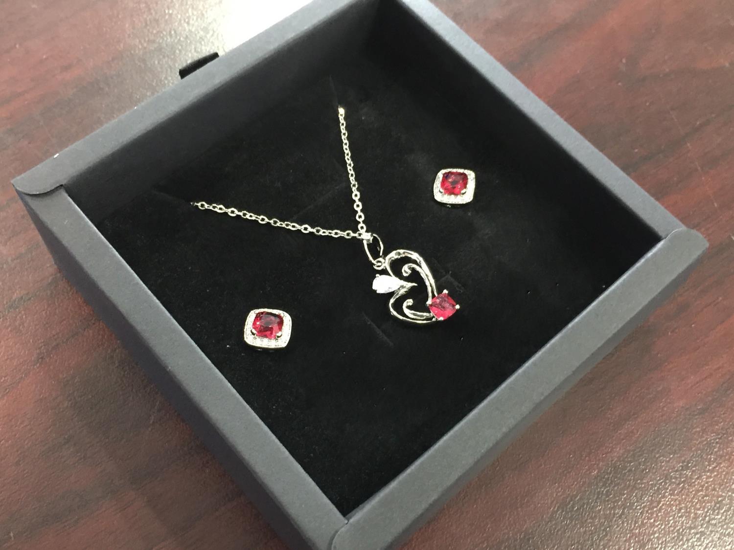1306 Smartlife Platinum Plated Red Ruby 2 Piece Set (Unused)