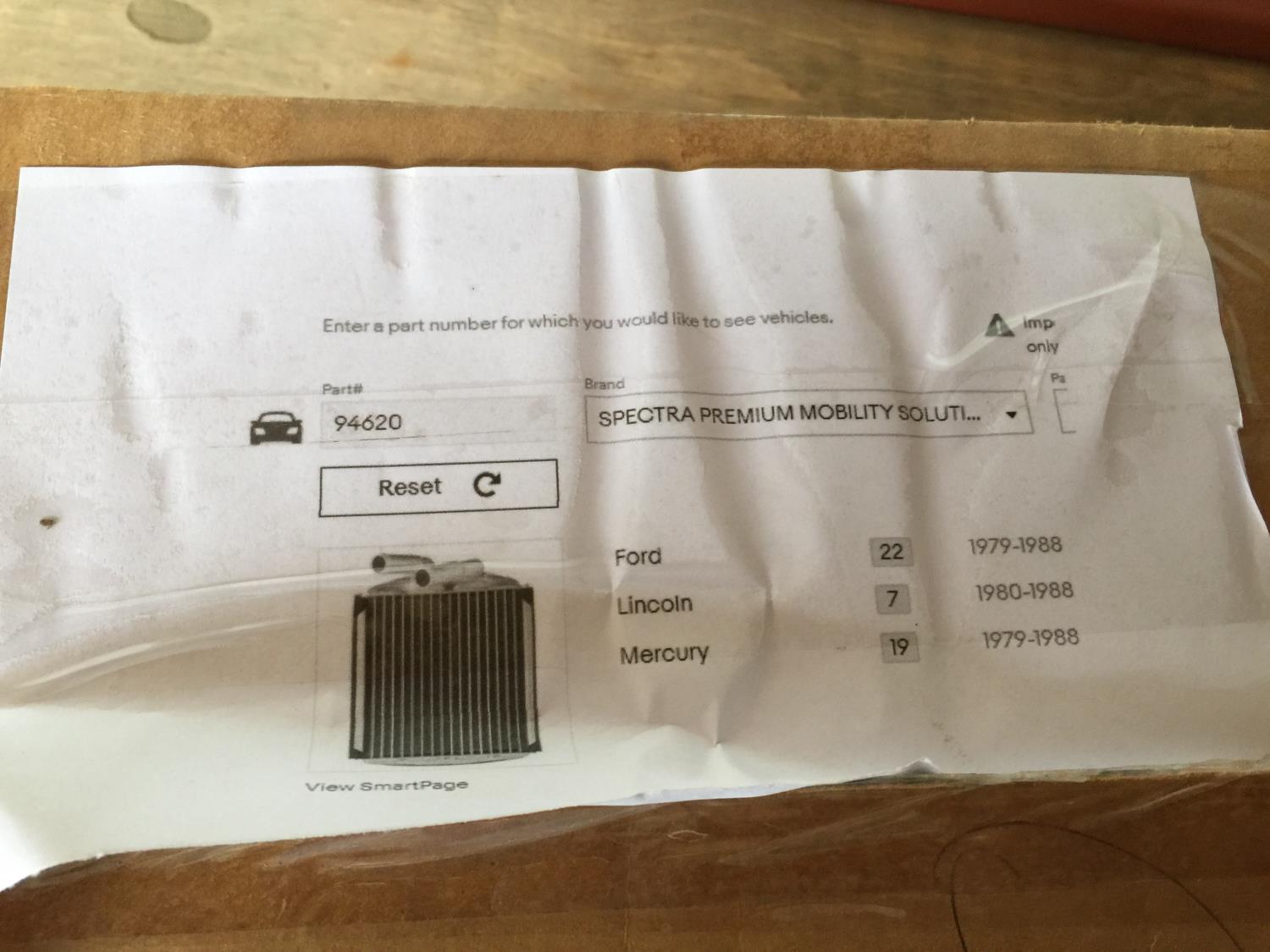 1935 Spectra Heater Core (Unused)