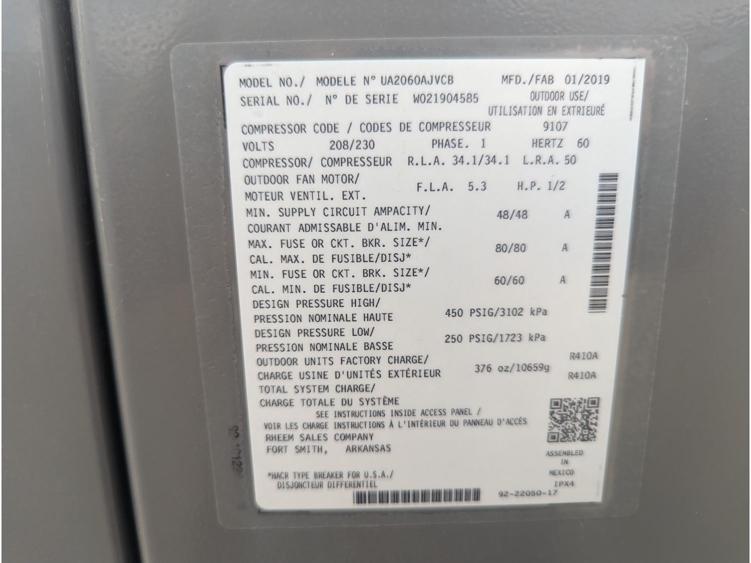377 2019 Ruud UA2060AJVCB Ultra Series 5 Ton 60,000 BTU Air Conditioner