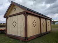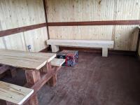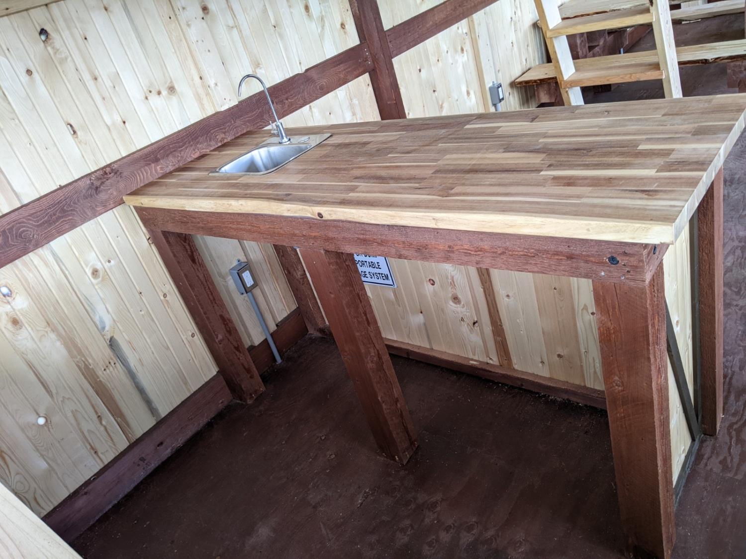 timber structure, metal roof, loft storage, pot lights and outlets wired for generator hookup, kitchen sink, and propane firepit