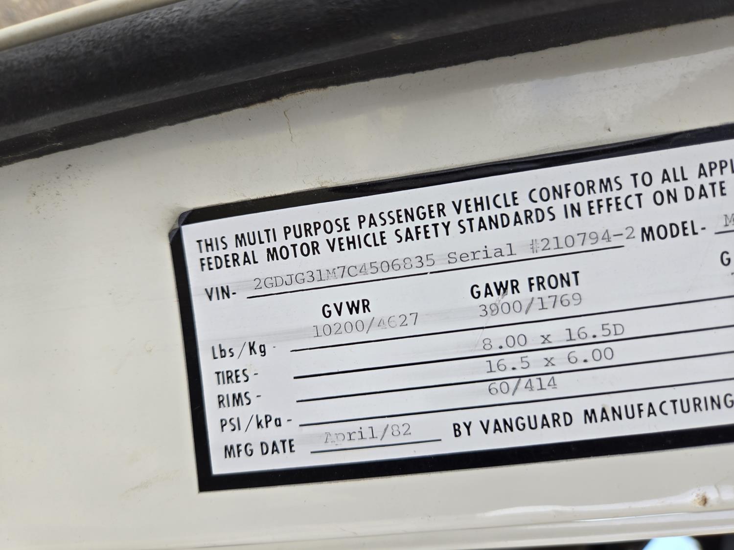 256 1982 GMC Vandura MG205 Dually Motorhome (Inoperable)