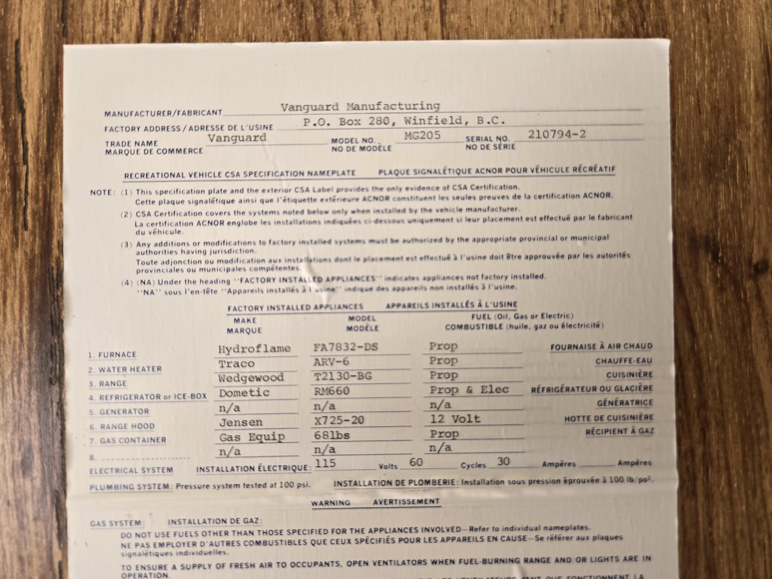 - Selling with Bill of Sale only! Consult your local registry office for registration requirements as provinces differ.