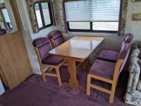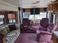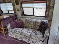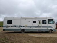 This motorhome has a Ford 460 Gas engine, automatic transmission, air conditioning, furnace, back up camera, microwave, oven, range, TV, full fridge with top freezer, full bathroom, full size rear bedroom, one slide, sleeps 4, Onan Emerald Plus generator, comes with cords, tools and camping equipment, kitchen supplies, rear duals,