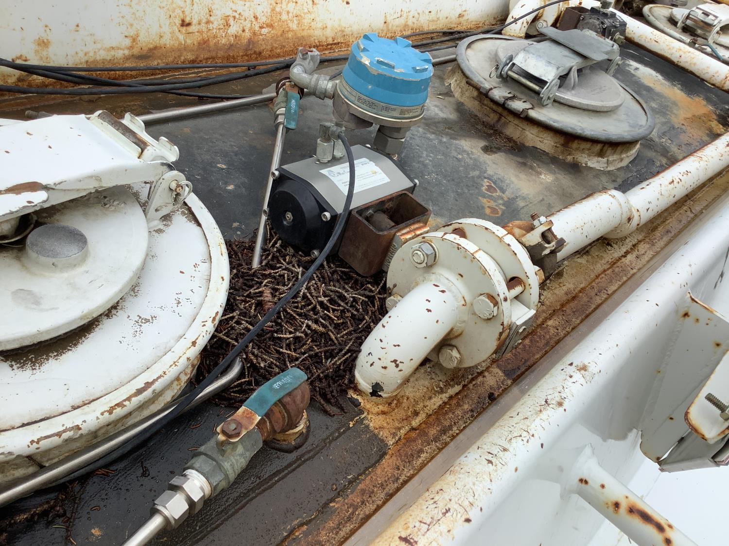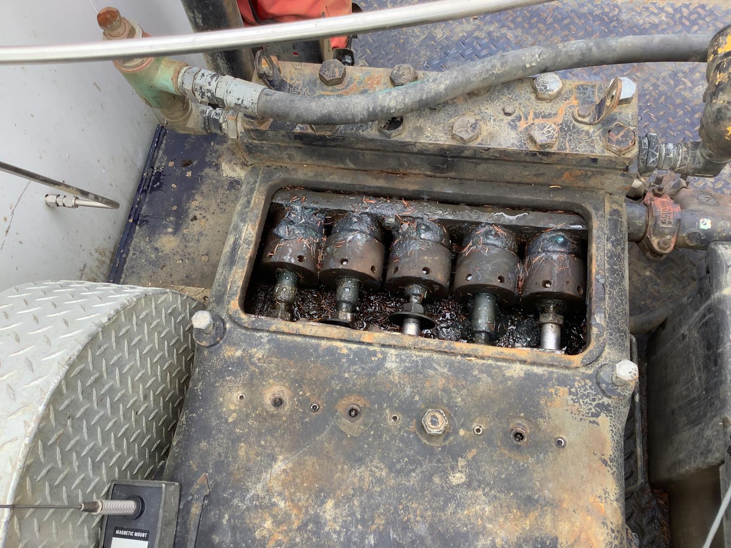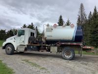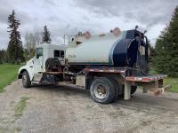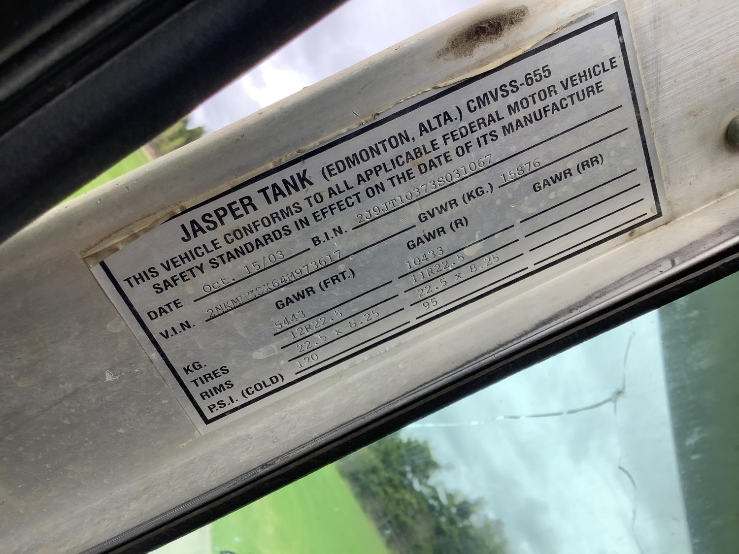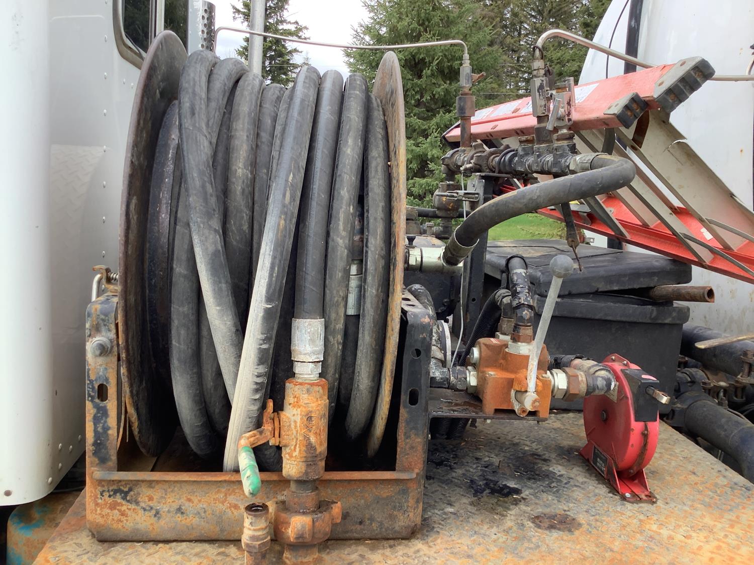 Cummins 8.3 liter diesel engine, engine brake, 10 speed manual transmission, AC, 12000 lb front axle, 23000 lb rear axle, differential lock, air ride suspension, Jasper 3 compartment 8200 liter tank with auto shut off belly valves and vents, electric hose reel, 5000 PSI 5 plunger pump, aluminum rims, 11R22.5 tires