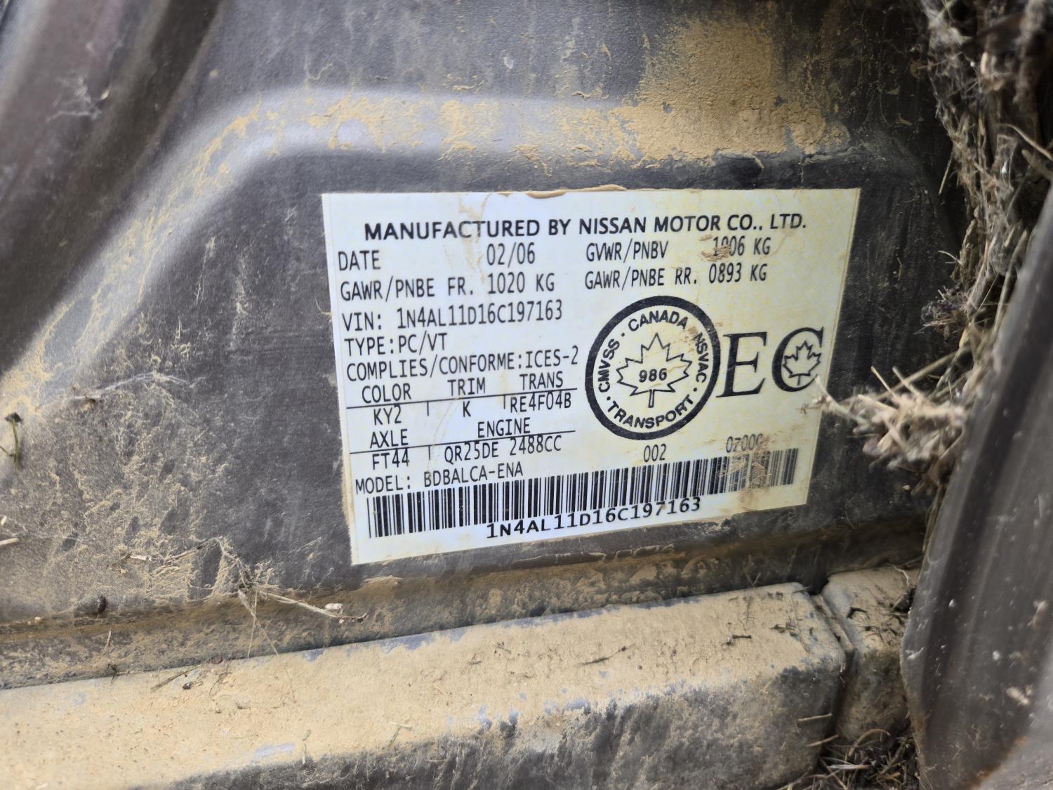 187 2006 Nissan Altima Sedan Car
