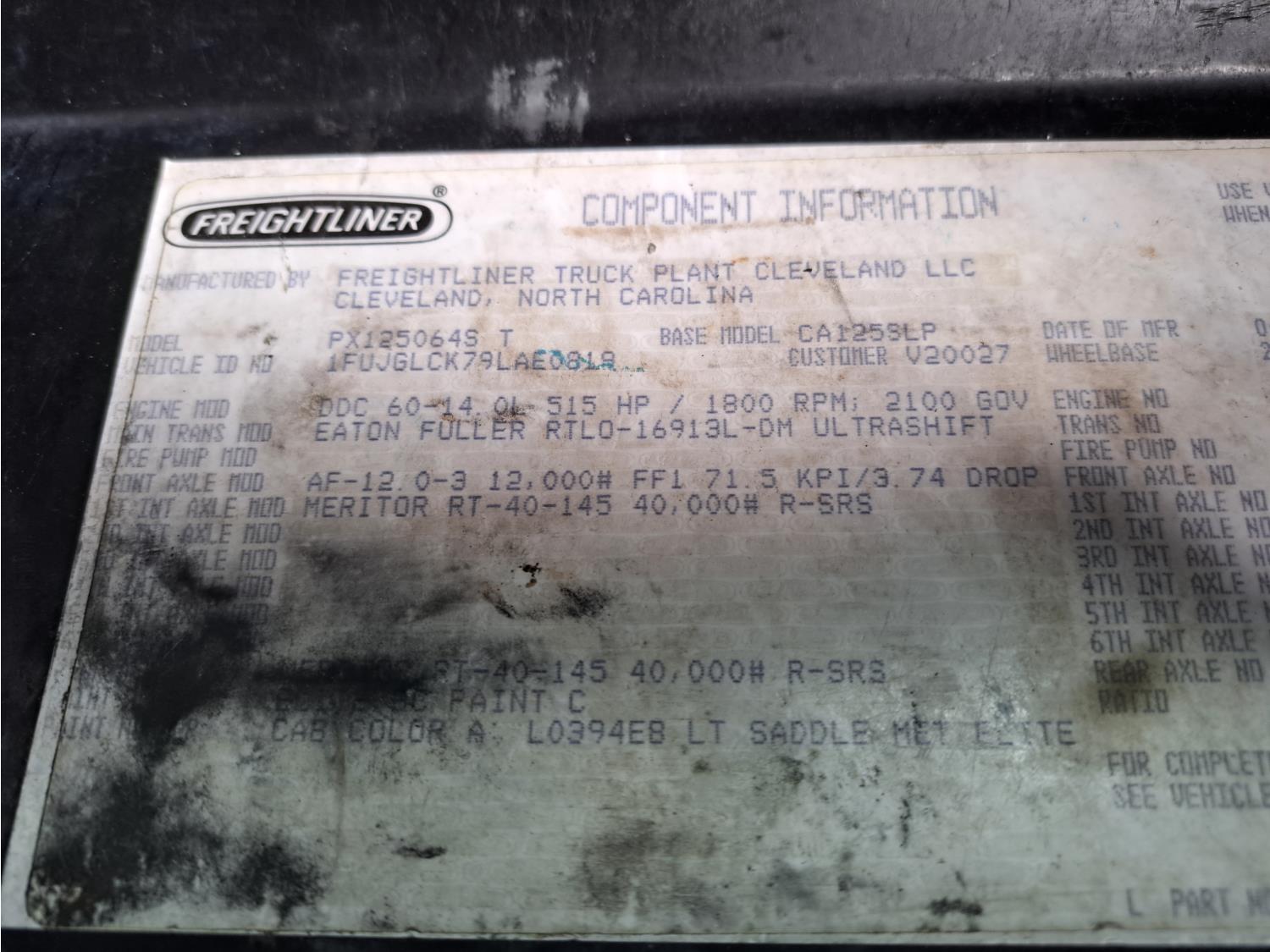 Detroit 60 SERIES 14 6 cylinder 515 HP diesel engine, engine brake, engine block heater, Eaton Fuller RTLO16913L 16 speed automatic transmission, high rise 60 inch sleeper, bunk beds, A/C, cruise control, air ride seats, stereo, Herd aluminum moose bumper, 4Ft x 7Ft x 10inch aluminum tool boxes, Airliner air ride suspension, 12,000 lb front axle, 40,000 lb rear axles, 3 way diff locks, 3.73 ratio, 235 inch WB, Aluminum tool box on deck made by East Manufacturing, all aluminum wheels, 11R24.5 front tires, 11R24.5 rear tires