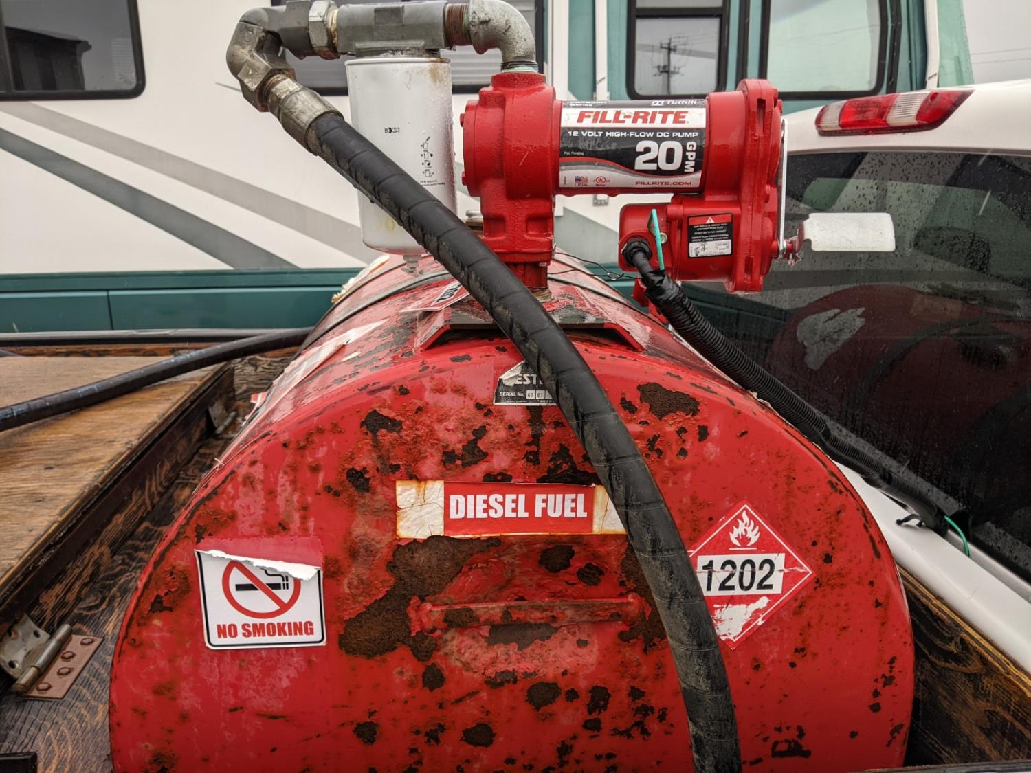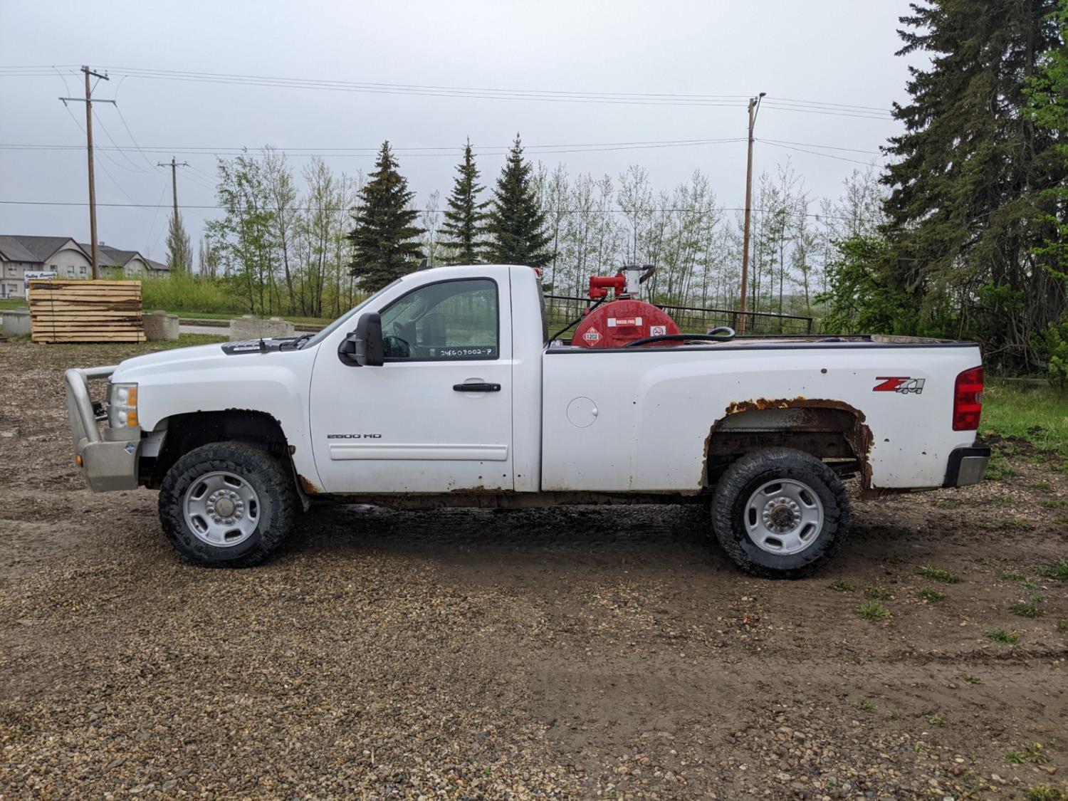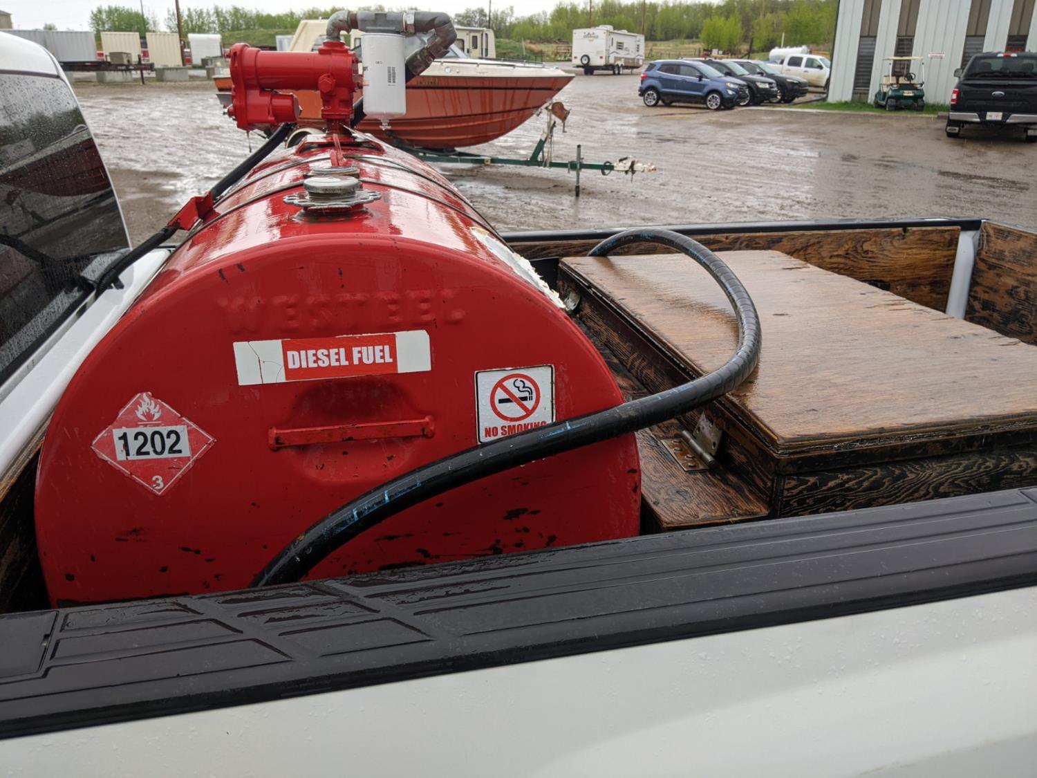 5.7 L, V8, gas, automatic transmission, P/W, P/L, A/C, 8 ft box, 450L Tidy tank fuel tank with Fill-Rite 20 GPM 12v pump, hose with nozzle, wooden tool box, and spare tire, 265/70R17 tires