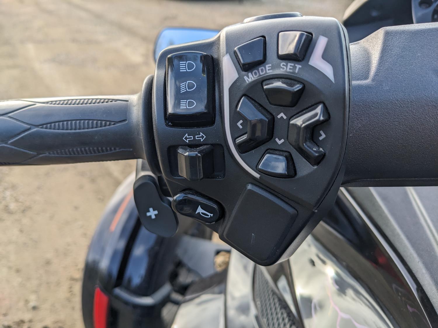 automatic downshift, reverse, hardcover saddle bags, two seater, manual windshield, zippered storage bags, has hitch never pulled anything, battery tender cord, new rear tire 225/50R15, front tires 165/55R15