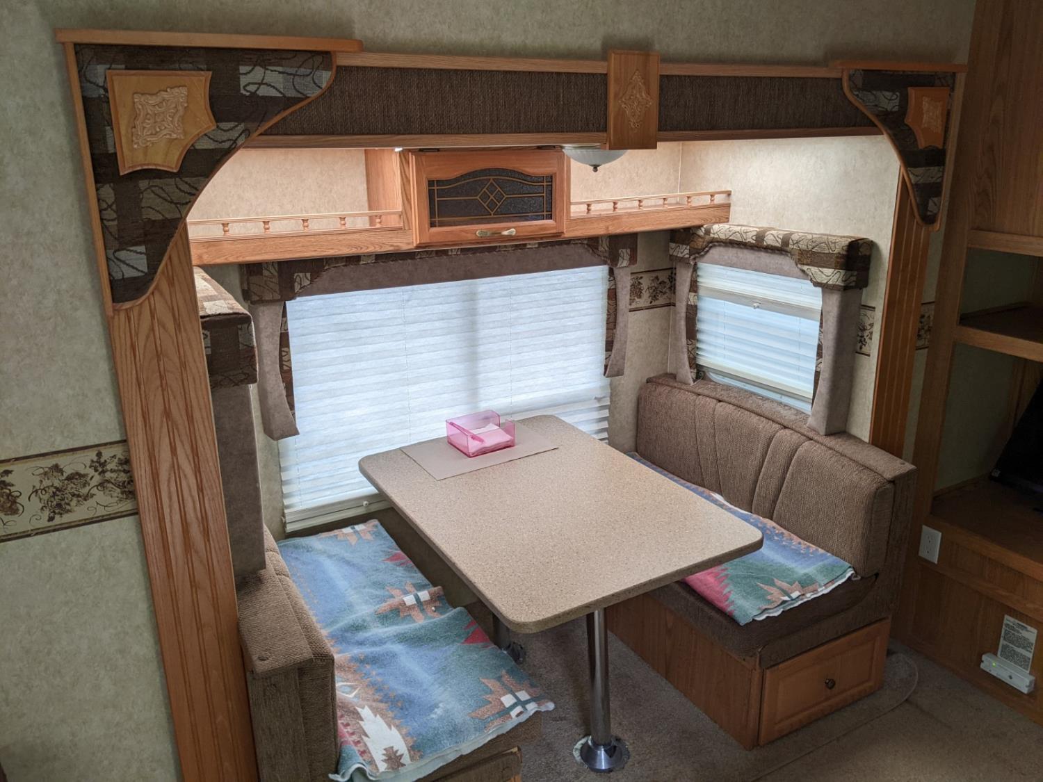Sleeps 6, stove, fridge, microwave, full bath, master bedroom, A/C, outdoor shower, 1 slide, manual awning, spring suspension, electric brakes, never smoked in, no pets, newer propane tanks, tow hitch, 225/75R15 tires