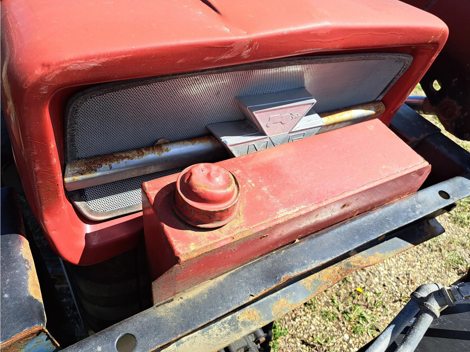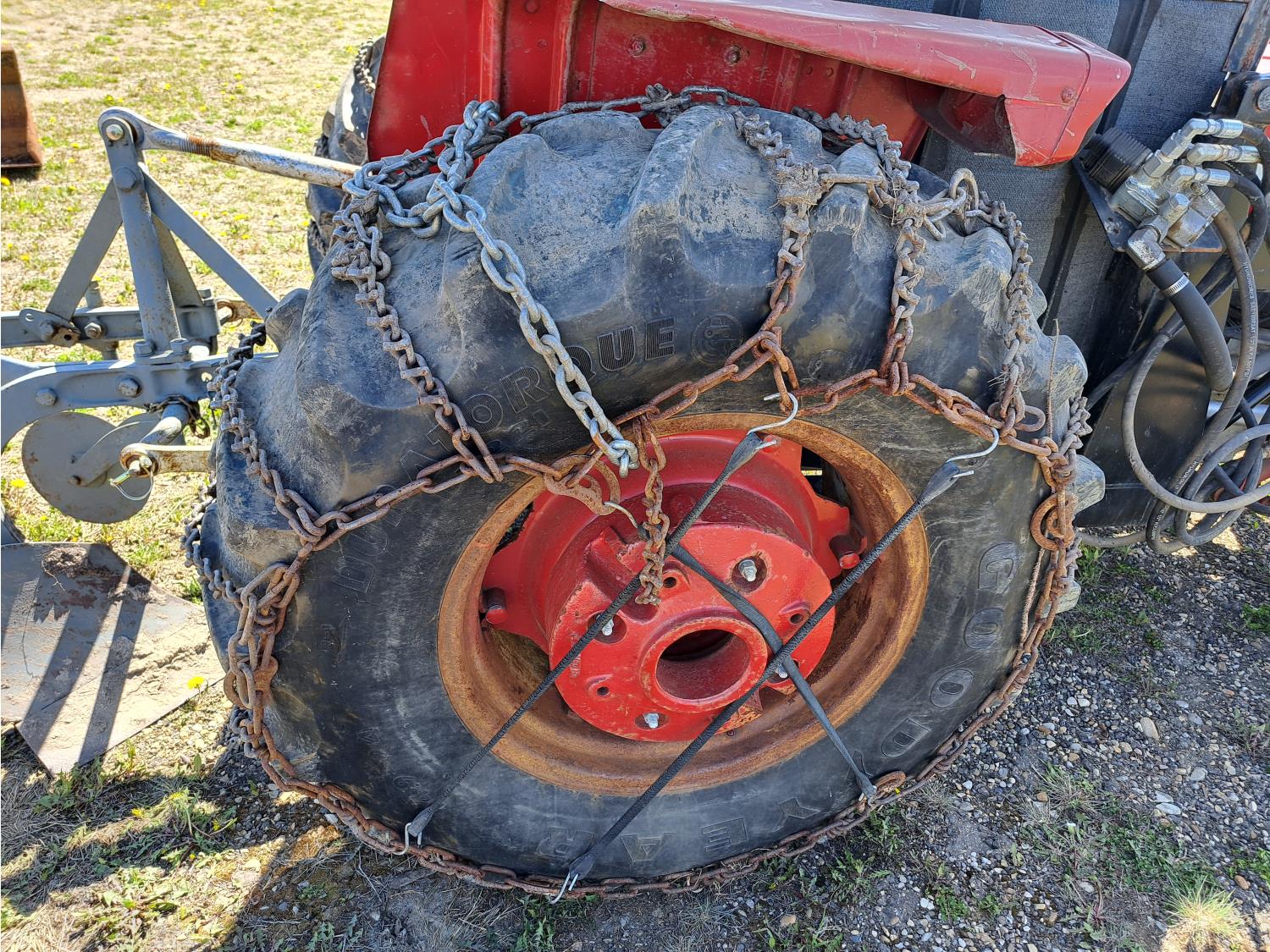 Loader, 60 inch bucket, Perkins AG3.152 3 cylinder 45.5 HP, gas engine, 38 PTO HP, 8 speed manual transmission, cab, extra 51 inch bucket , 540 PTO, 3 point hitch, 2 rear hydraulic outlets, rear wheel weights, 6.00X16 front tires, 14.9X24 rear tires, calcium filled rear tires, 2 bottom plow, 14 inch bottoms, 1 coulter