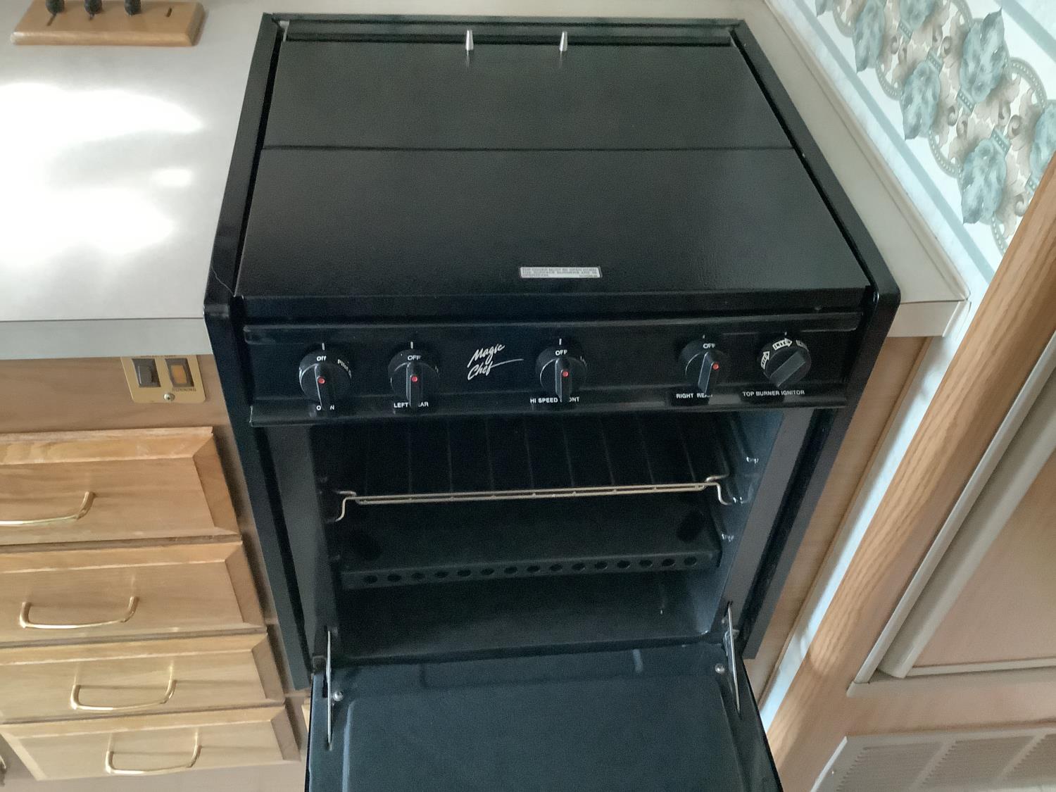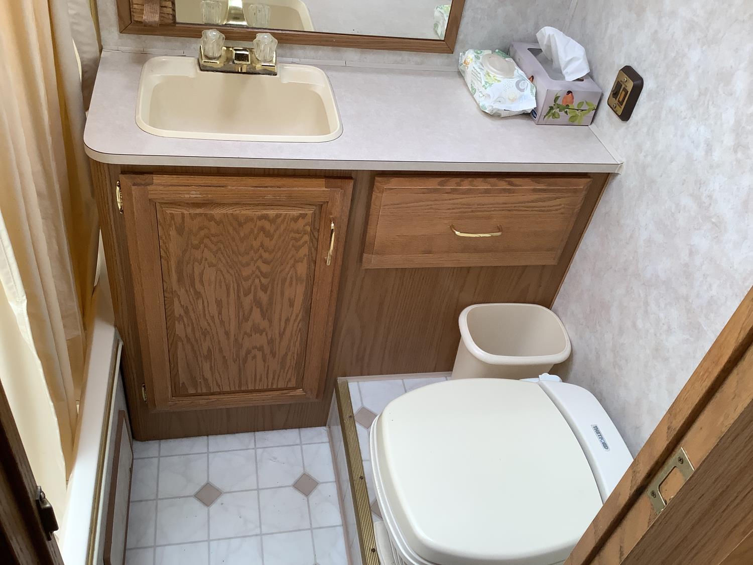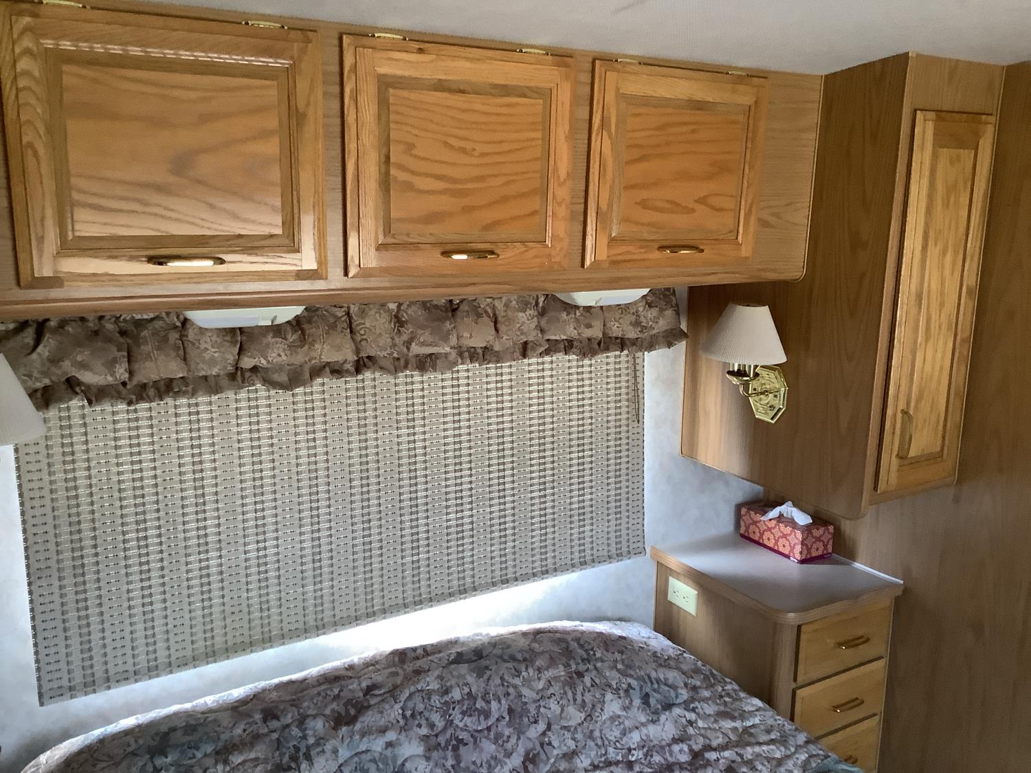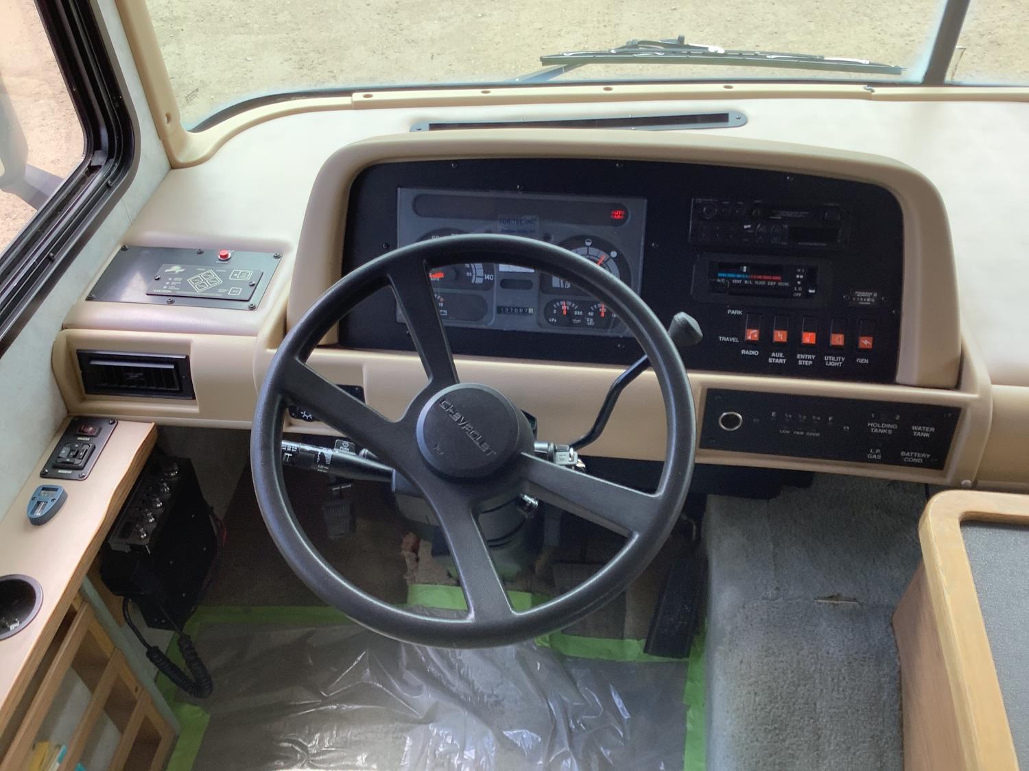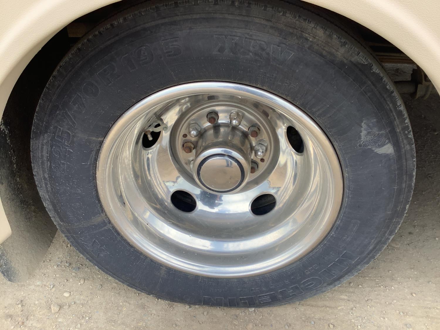 This motorhome has a GM V8 gas engine. automatic transmission, air conditioning, heated power mirrors, furnace, power leveling jacks, back up camera, microwave, oven, oven fan, TV, full fridge with top freezer, full bathroom, full size rear bedroom, all manuals, Onan generator model 4000 with only 106 hrs, comes with cords, tools and camping equipment, hydraulic brakes, rear duals,