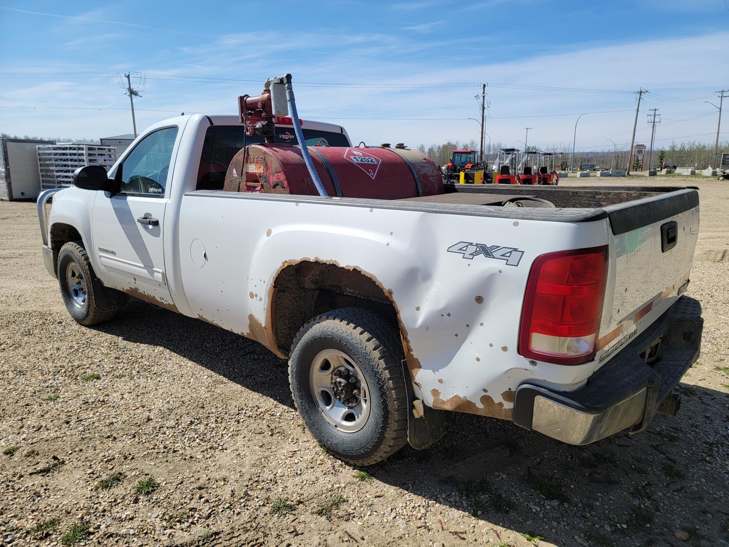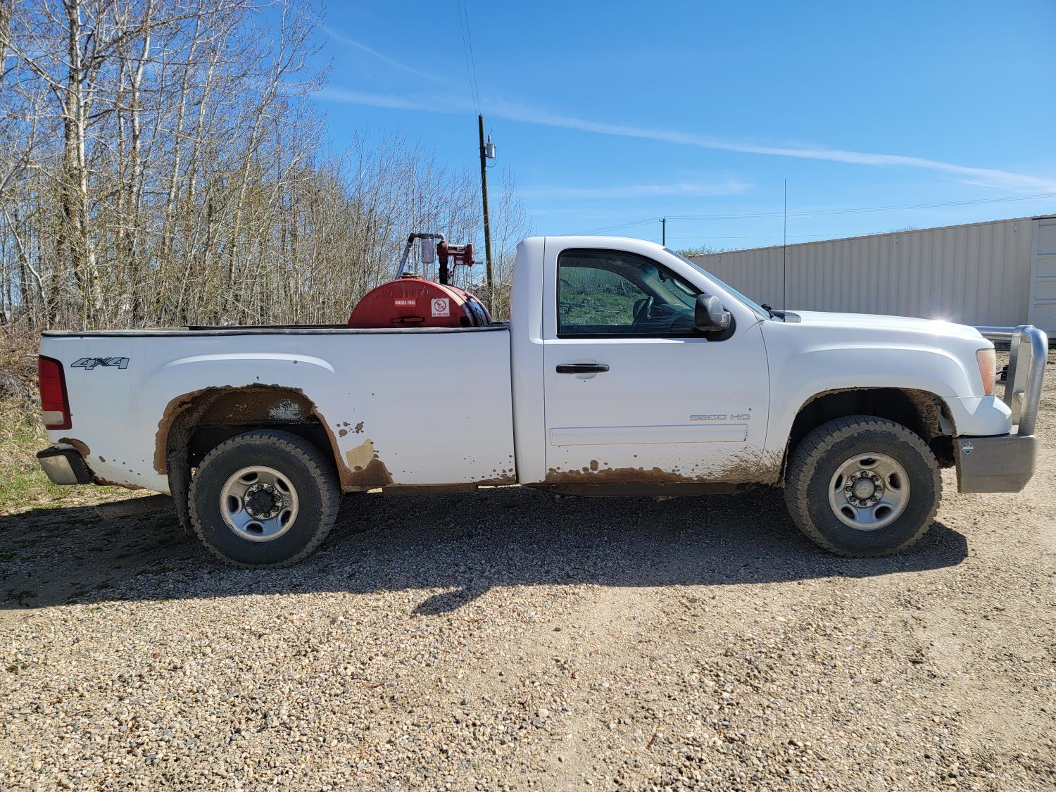 6.0 L, V8, gas, automatic transmission, P/W, P/L, A/C, 8 ft box, aluminum font bumper, Westeel 450 L fuel tank with Fill-rite 20gpm 12v fuel pump, and wooden tool box, HERD aluminum bumper , 265/75R16 tires