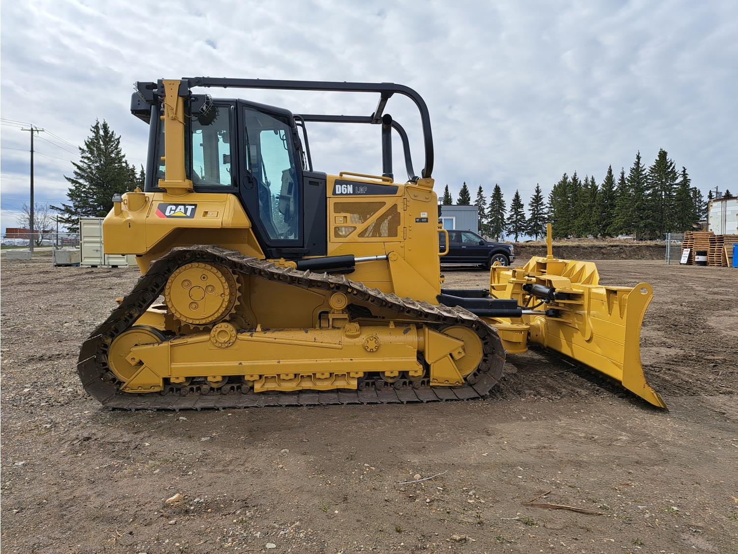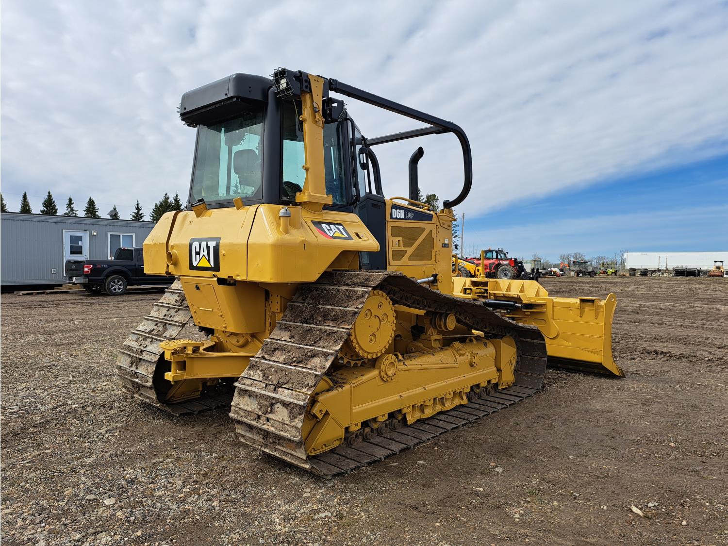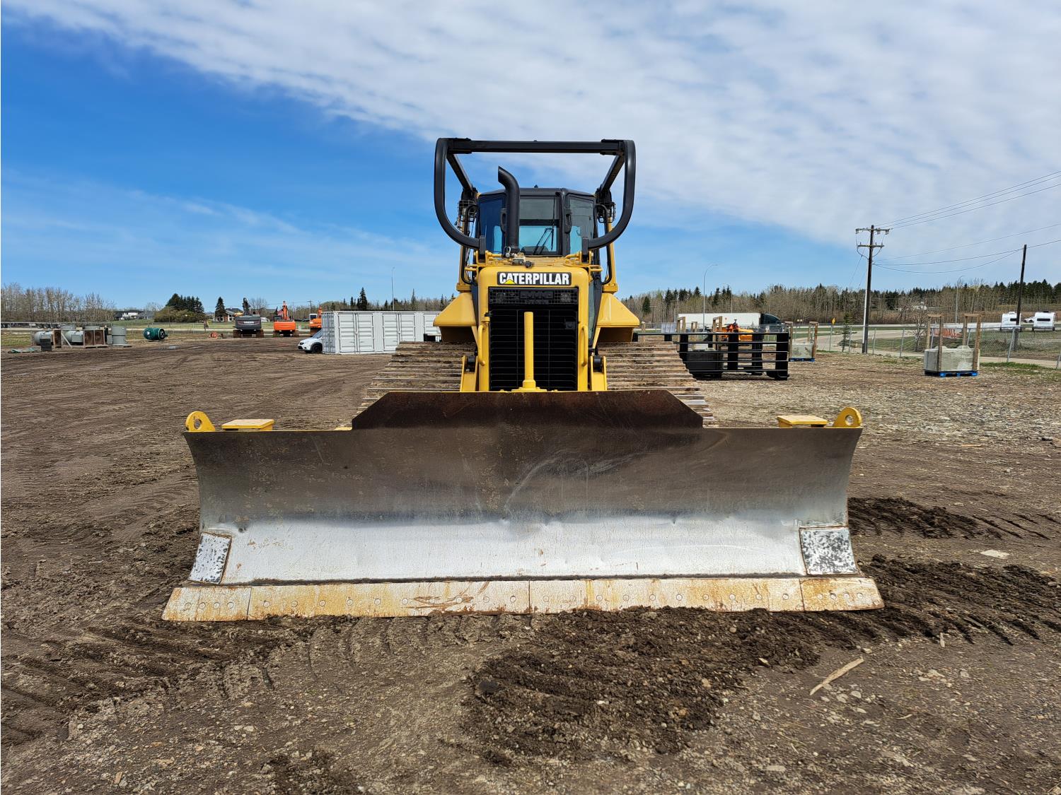 Enclosed cab, A/C, air ride seat, C6.6 ACERT diesel engine, brush sweeps, pre-wired grade control, angle dozer, 159 inch PAT blade, drawbar, 33 inch track pads, single grousers