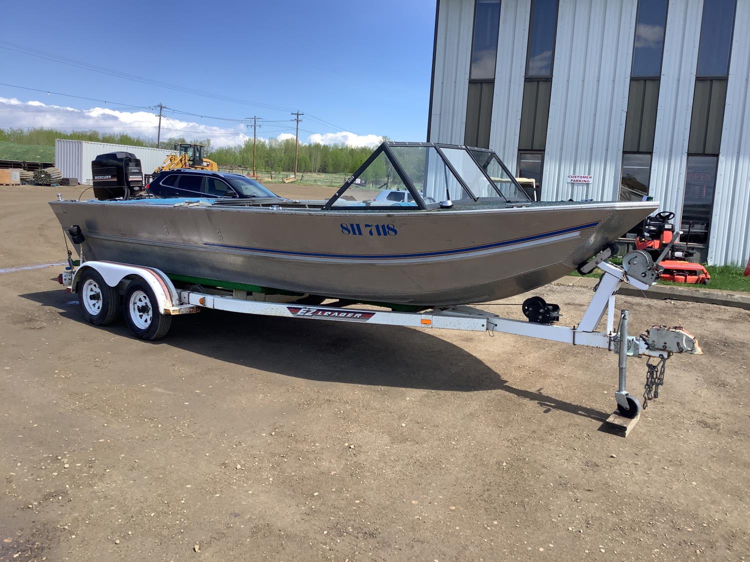 mercury black max 200 HP. Jet drive out board motor, 1986 Ezloader tandem axle trailer with surge brakes.