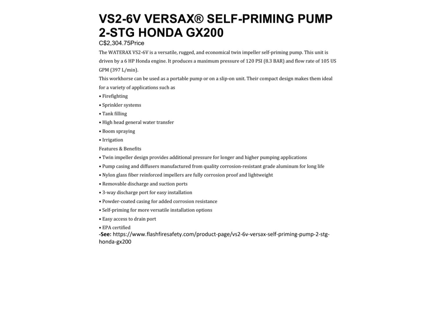 14 Waterax VS2-6V Versax 2 Stage Self Priming Pump (Unused)