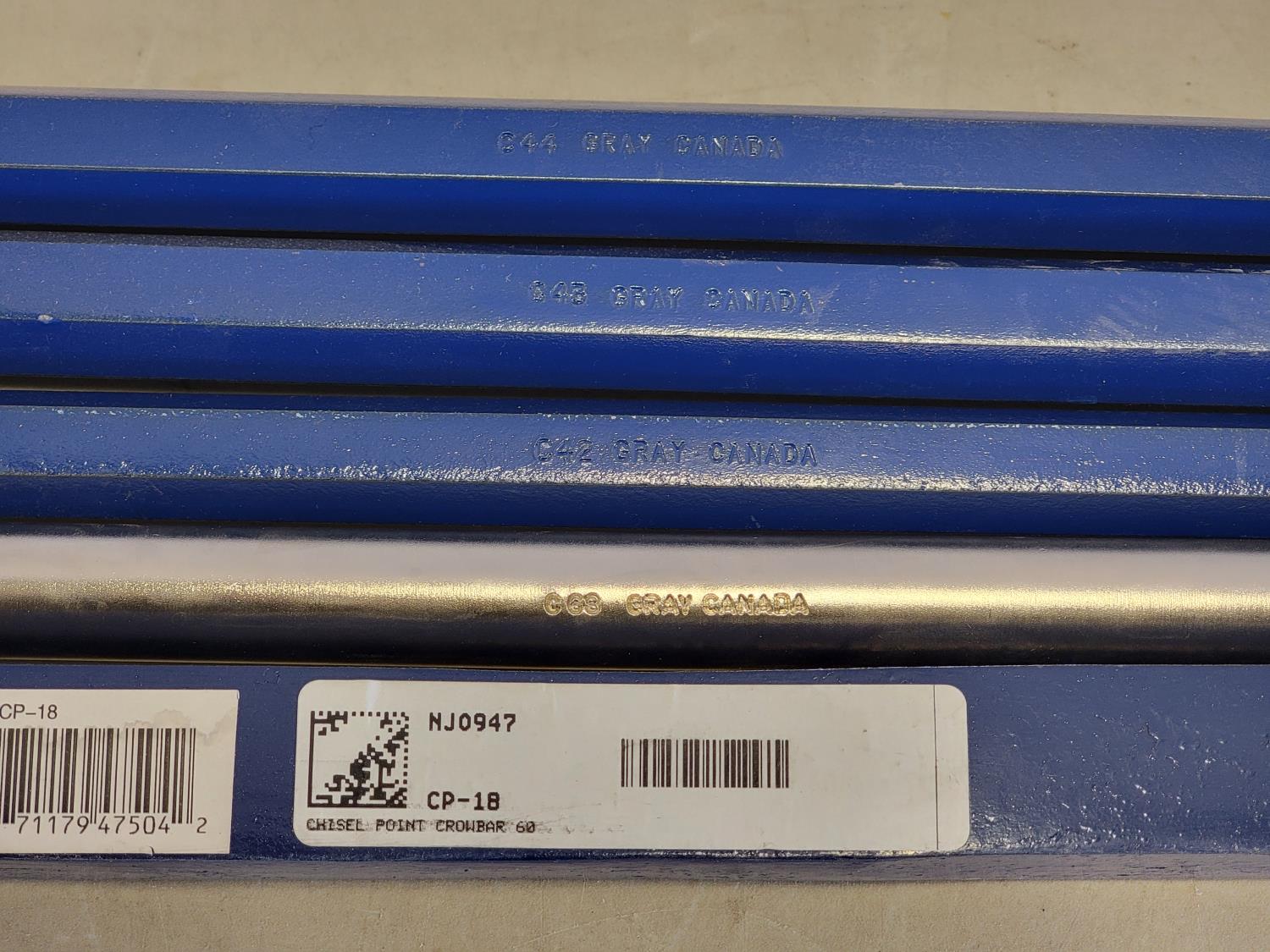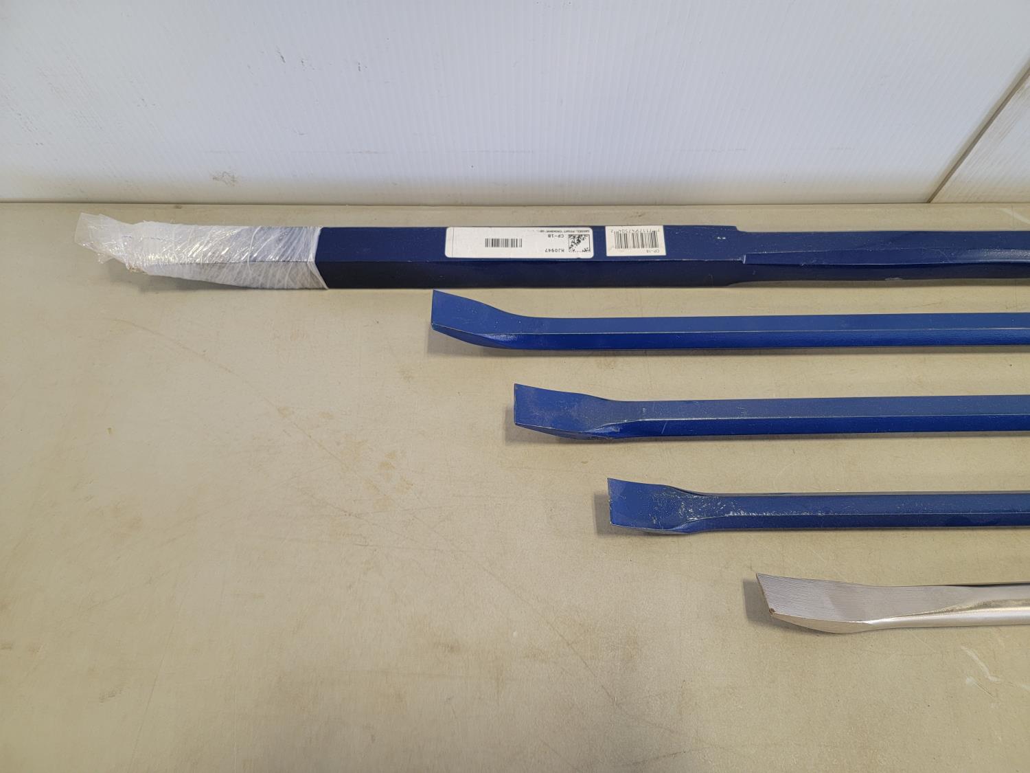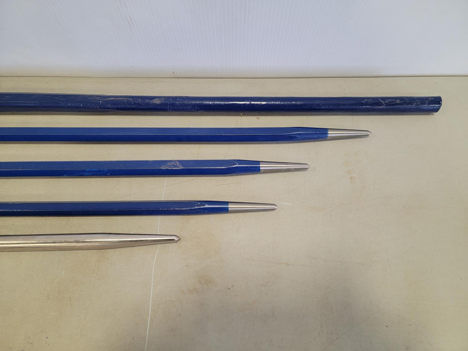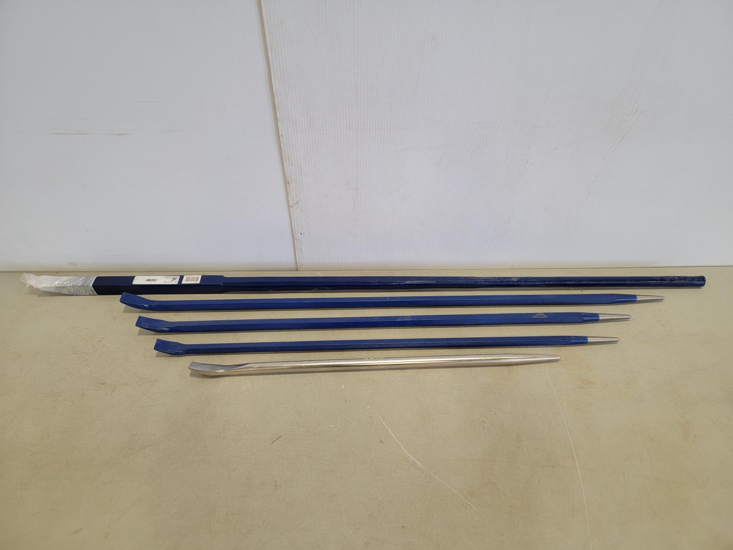 29-1/2 inch pinch bar, 38 inch pinch bar with 1-1/16 inch hex shank, 42 inch Pinch Bar 7/8in hex shank, 44 inch pinch bar, 60 inch chisel point crowbar