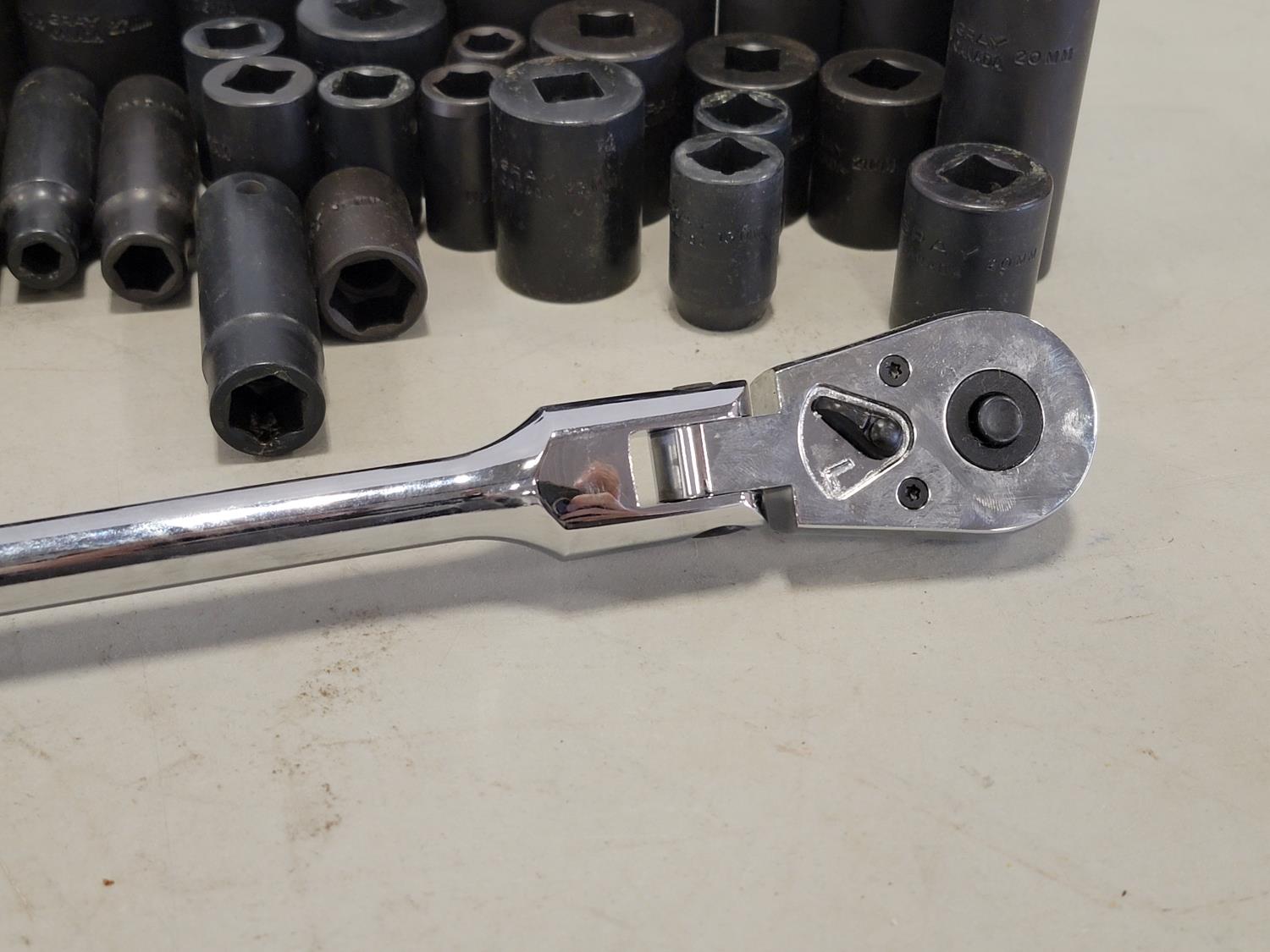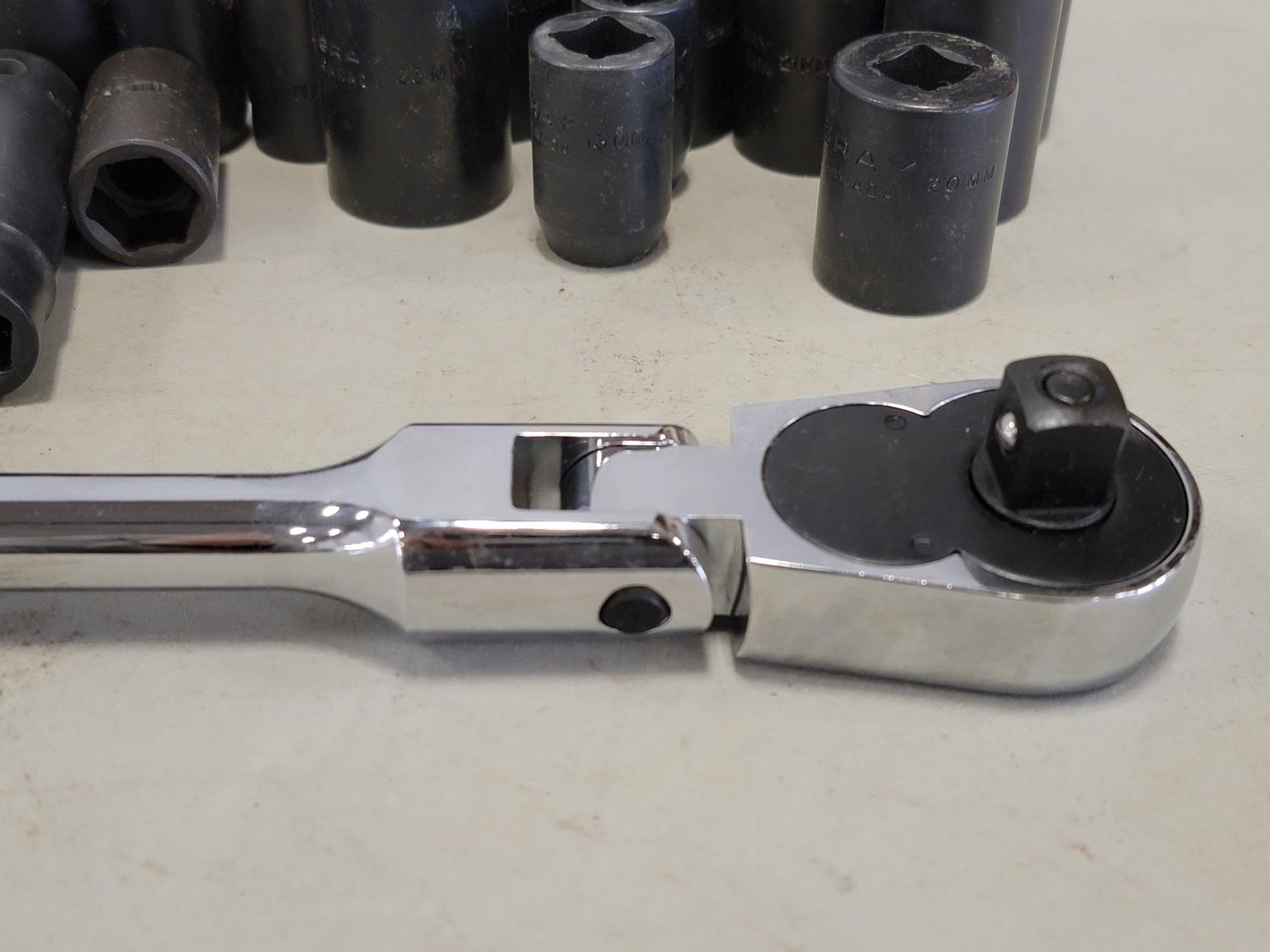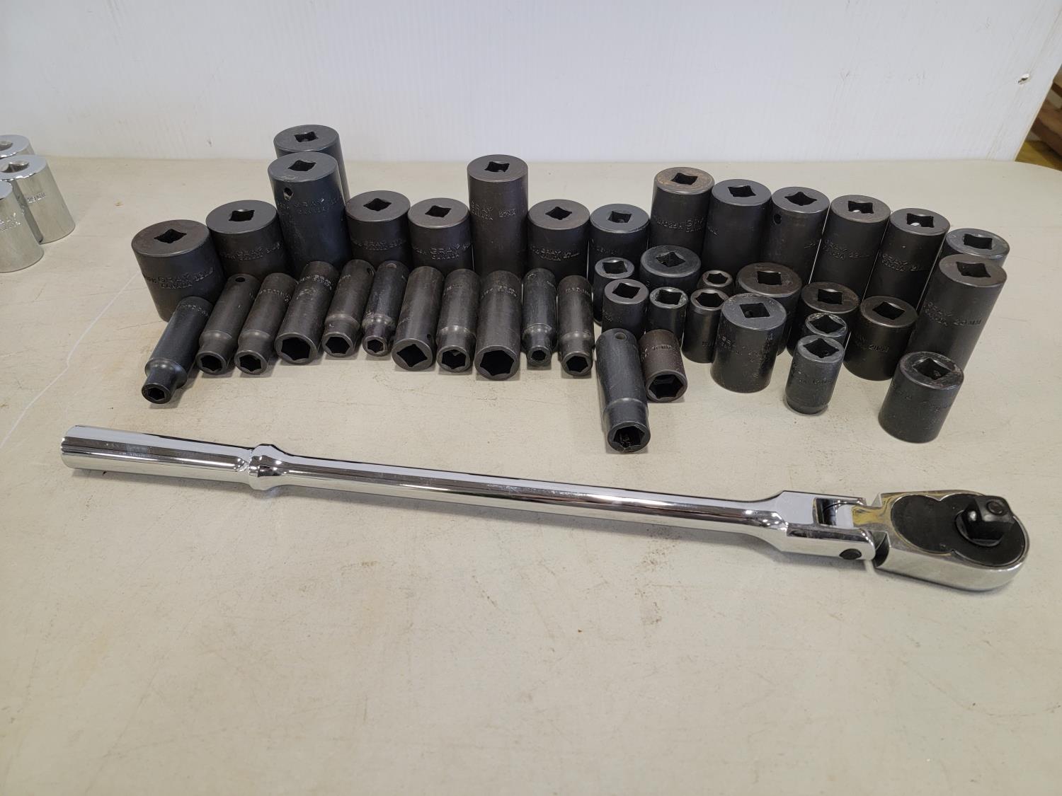 5460 Qty of Gray Tools 1/2 Inch Drive Sockets and Ratchet (Unused)