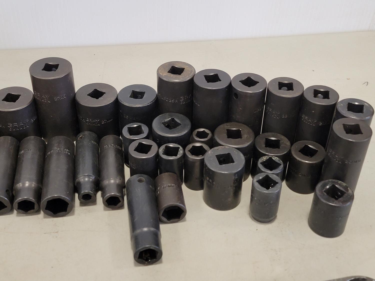 5431 Qty of Gray Tools 3/8 Inch Drive Deep and Shallow Sockets (Unused)