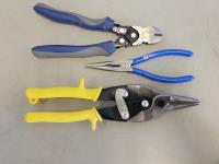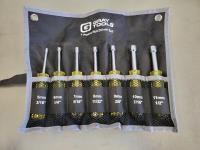 7 piece screwdriver set, 26 piece 3/8 inch drive SAE socket and ratchet set, 7 piece metric nut driver set, 5 piece pin punch set, (2) telescoping mirrors, heavy duty rivet gun, needle nose pliers, straight cutting aviation snips, crow bar