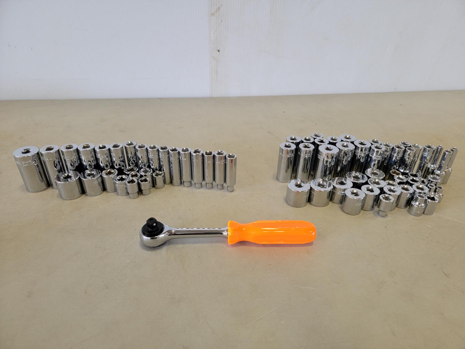 5433 Qty of Gray Tools 3/8 Inch Drive Sockets and Ratchet (Unused)