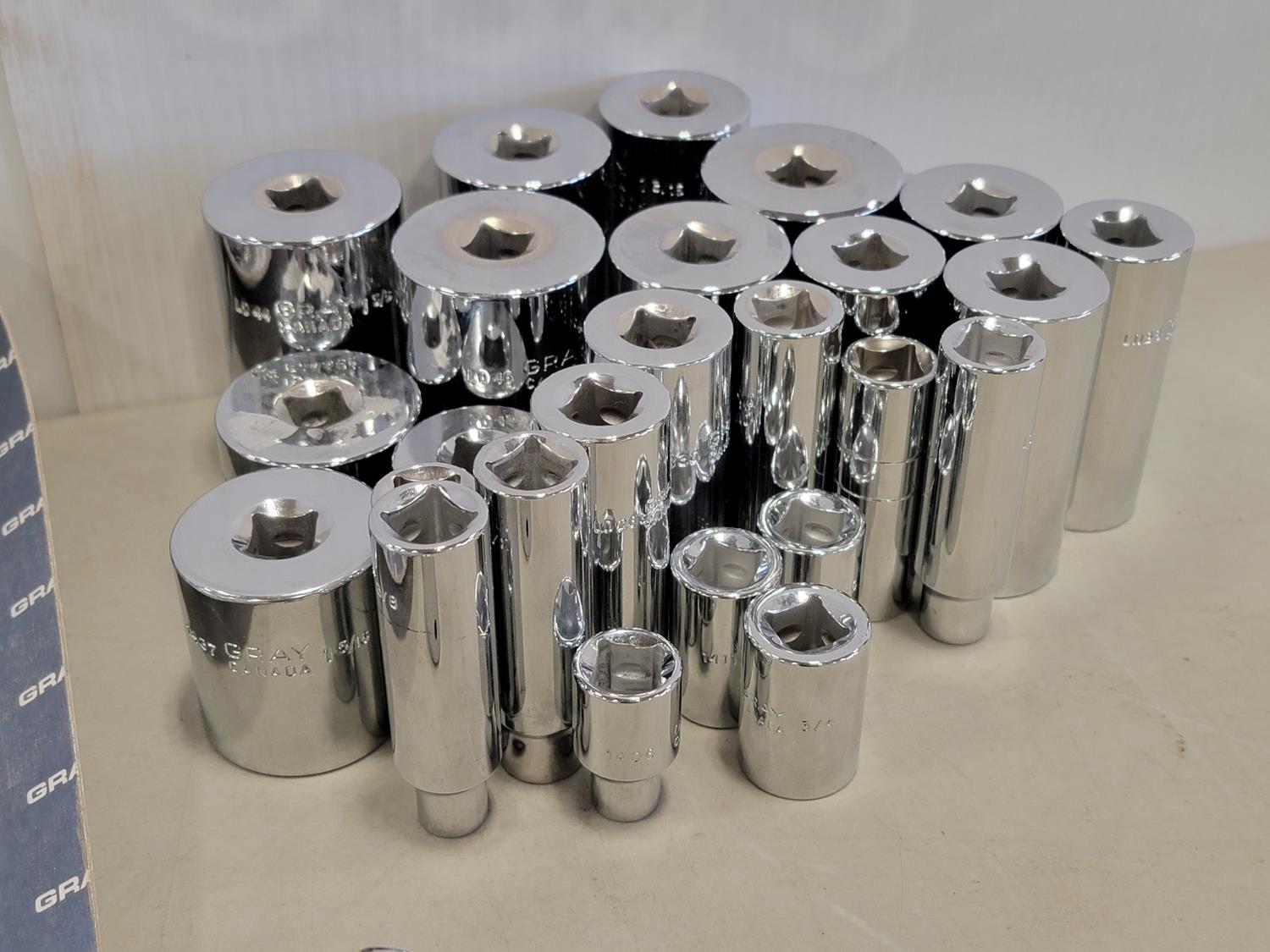 5432 Qty of Gray Tools 3/8 Inch Drive Deep and Shallow Sockets (Unused)
