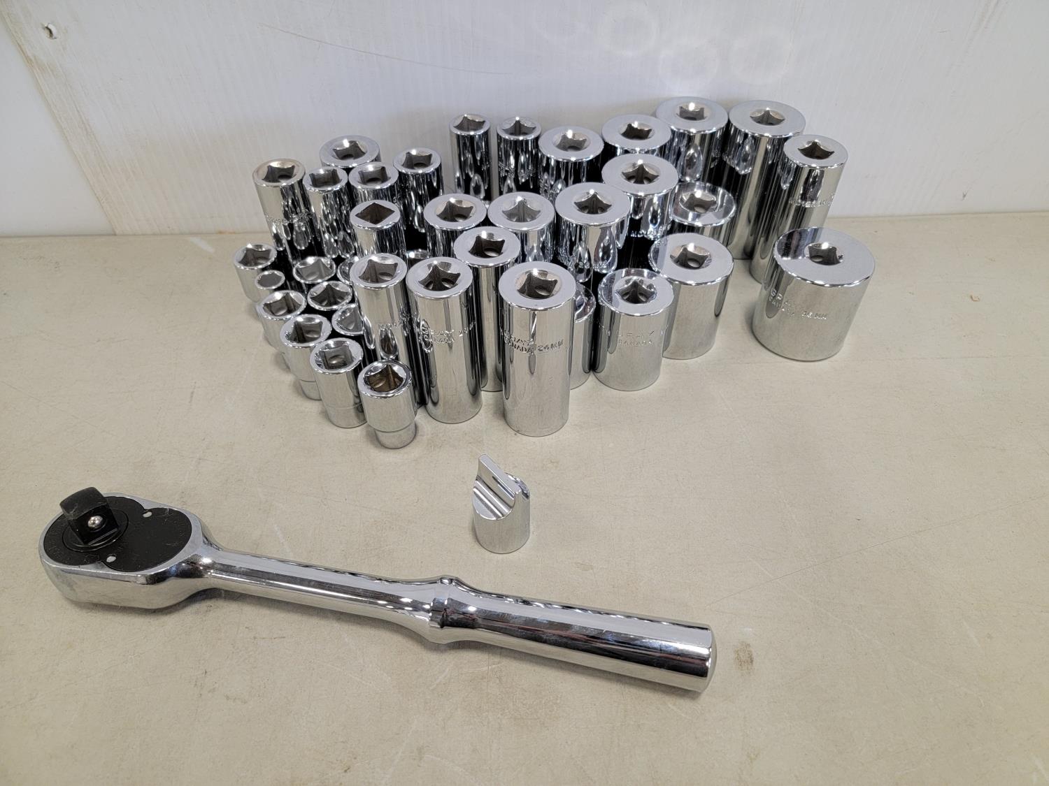 5454 Qty of Gray Tools Sockets and 1/2 Inch Drive Ratchet (Unused)