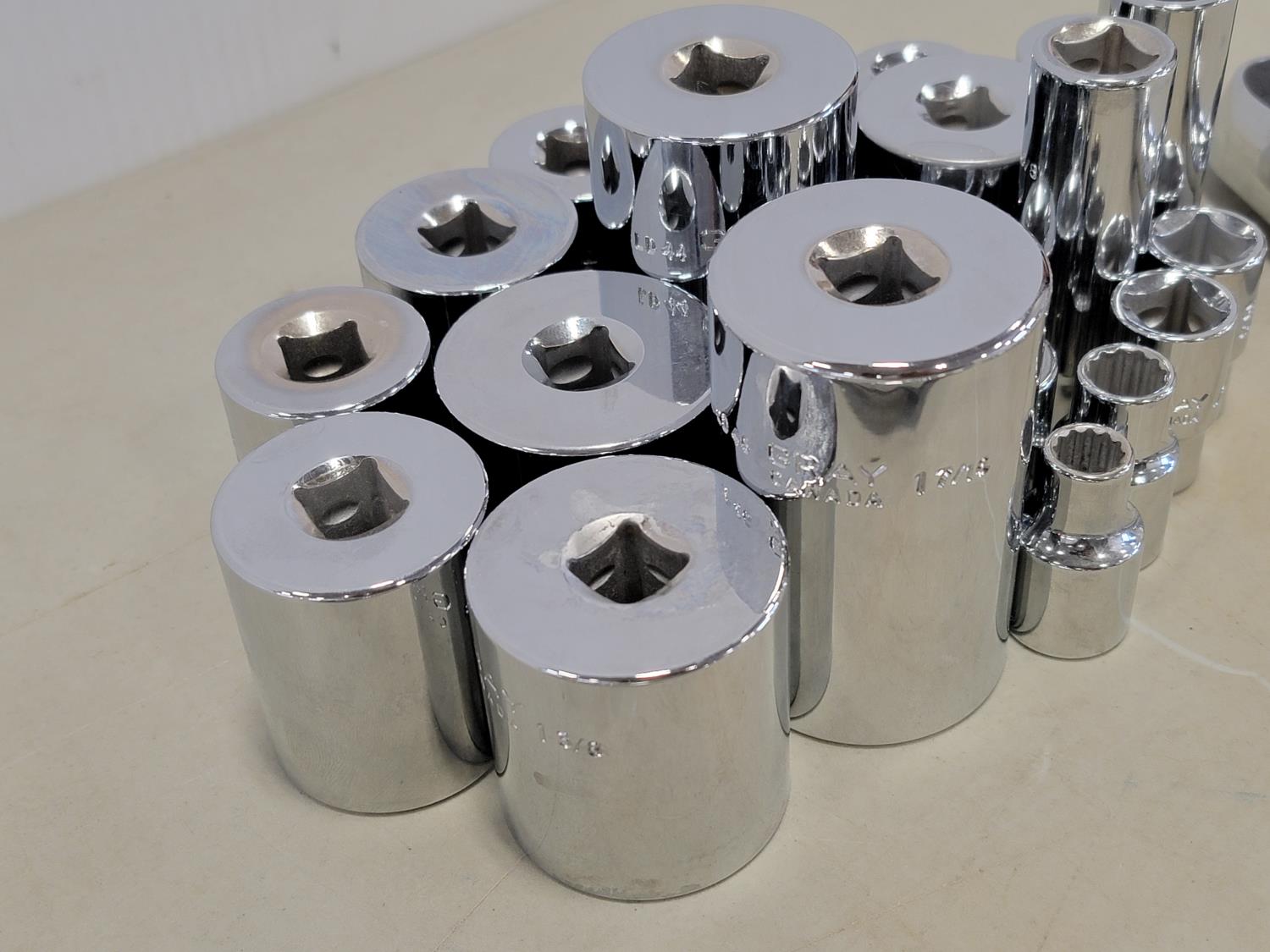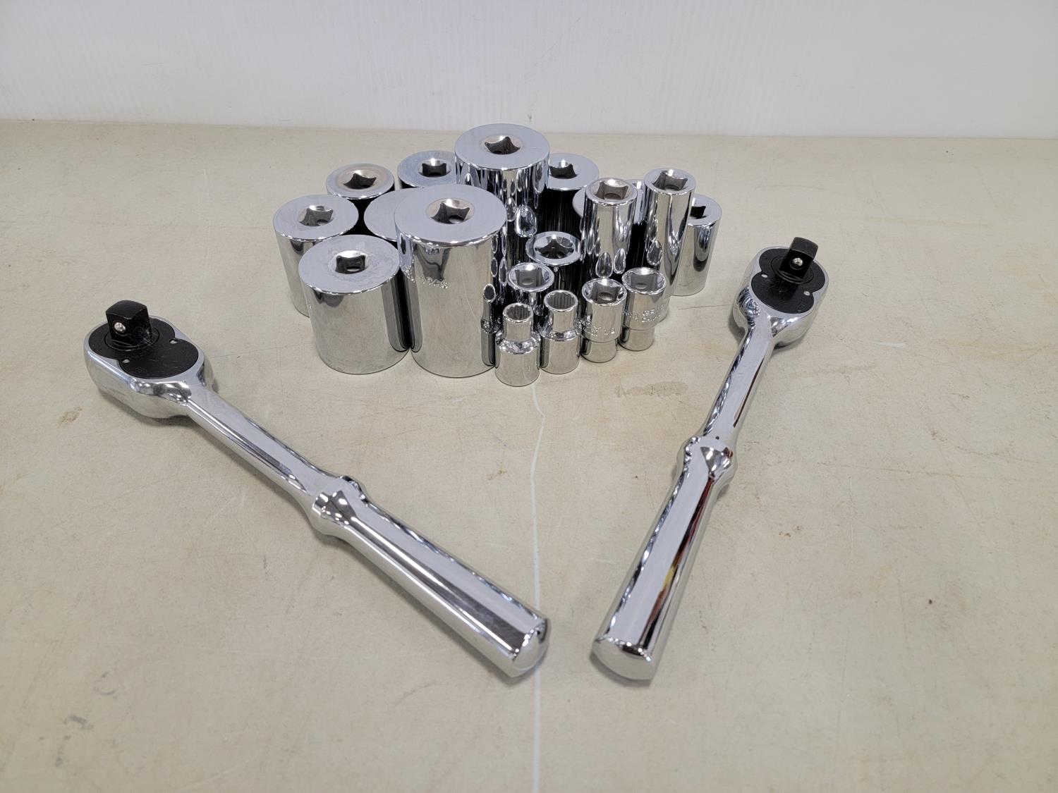 5455 Qty of Gray Tools Sockets and (2) 1/2 Inch Drive Ratchets (Unused)