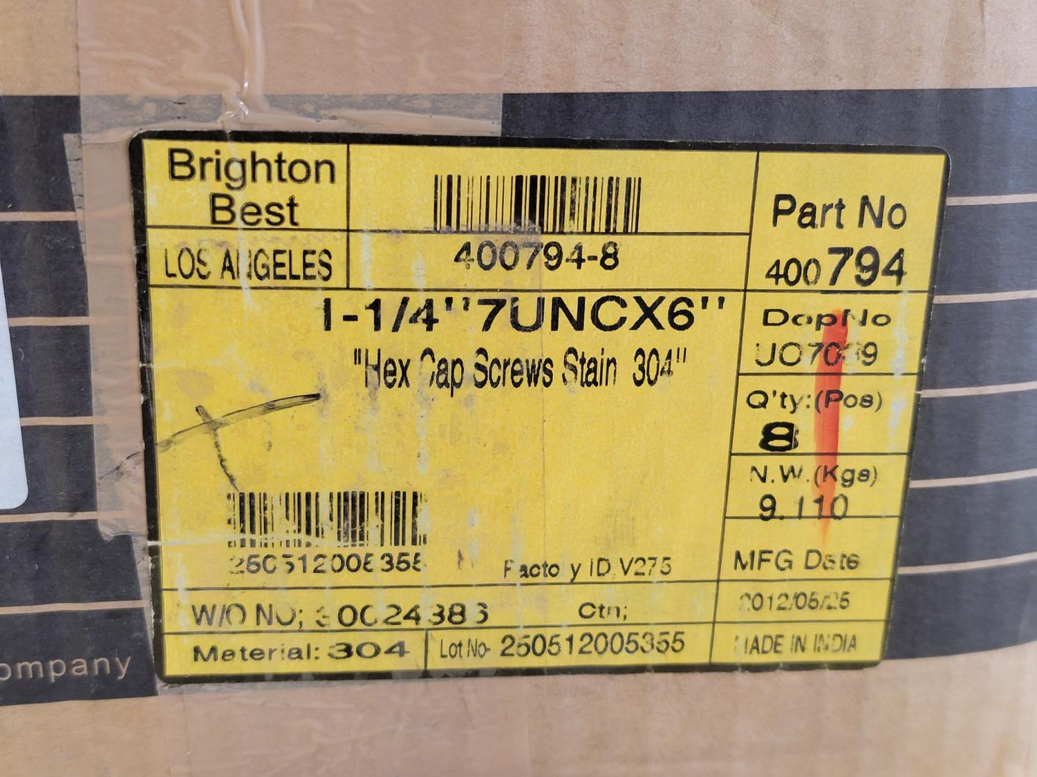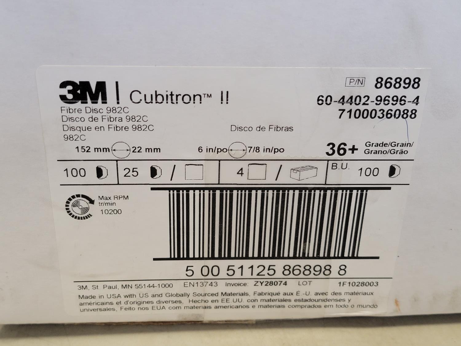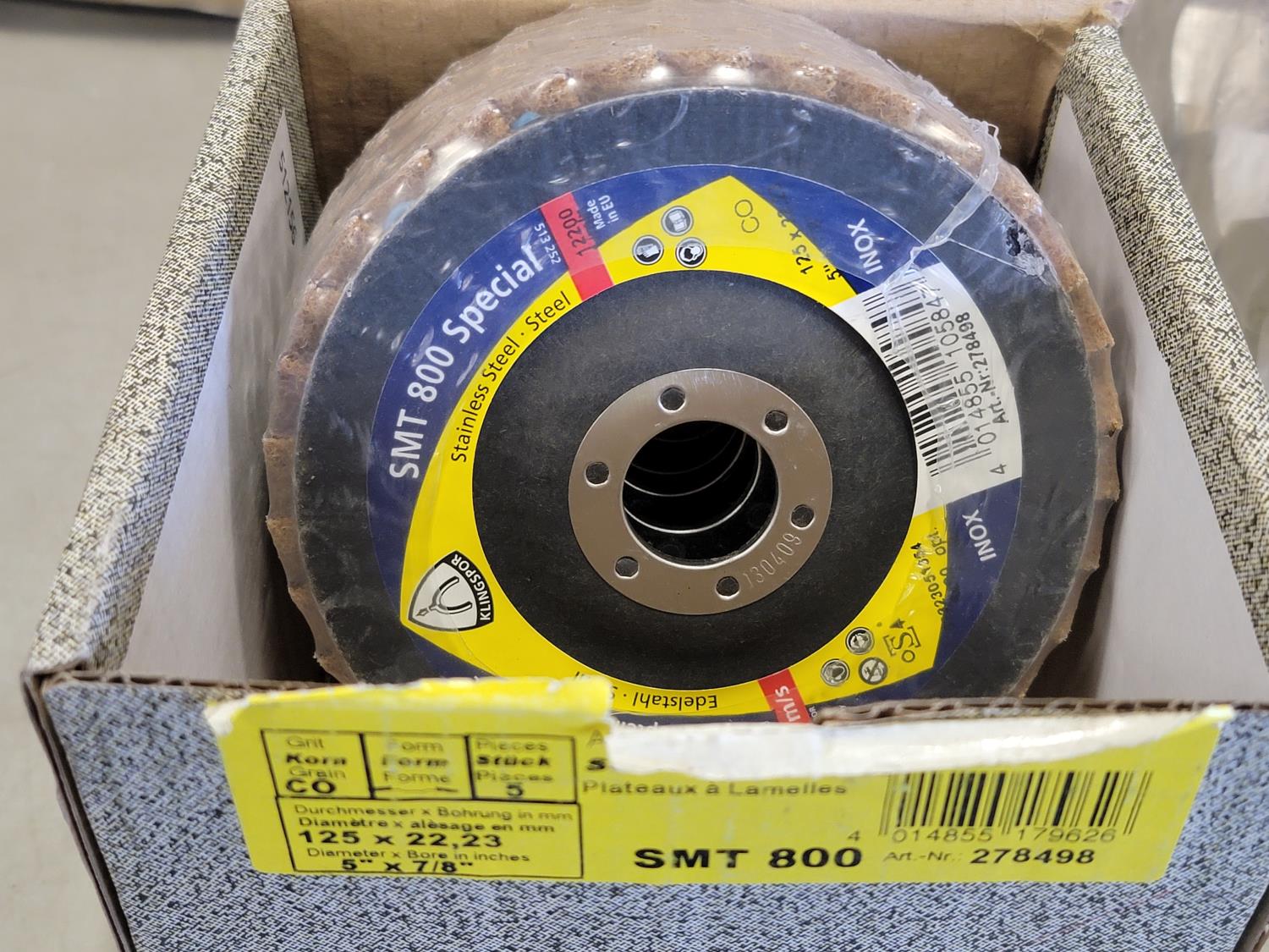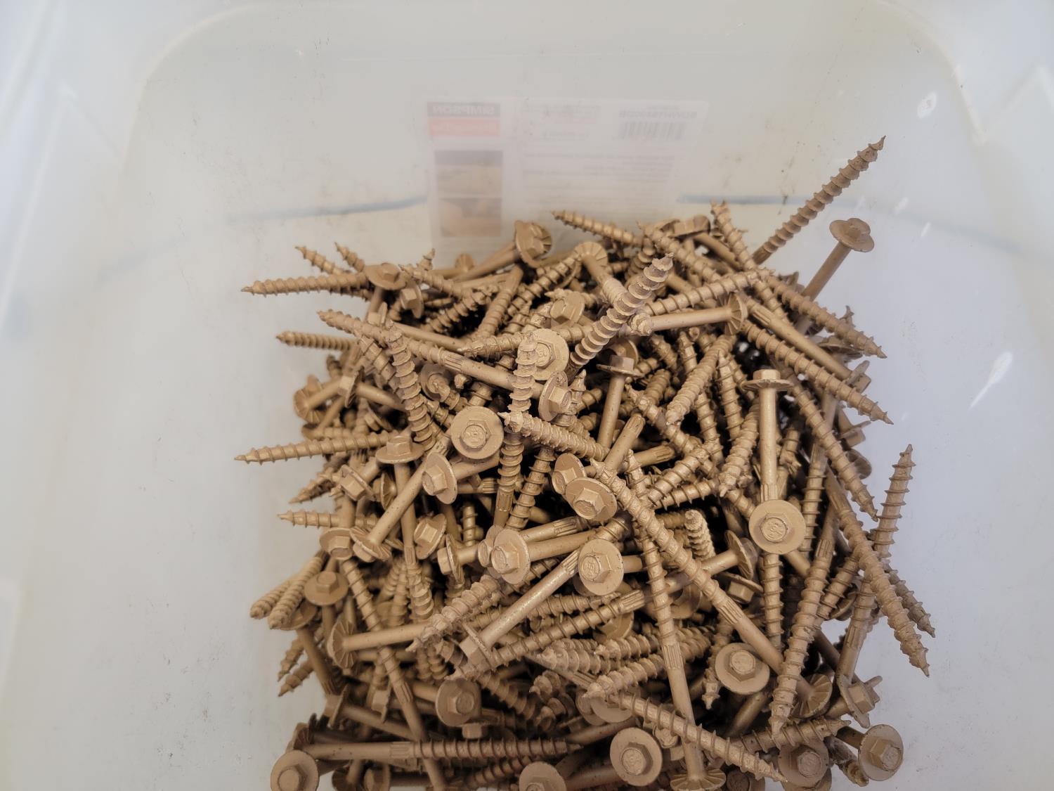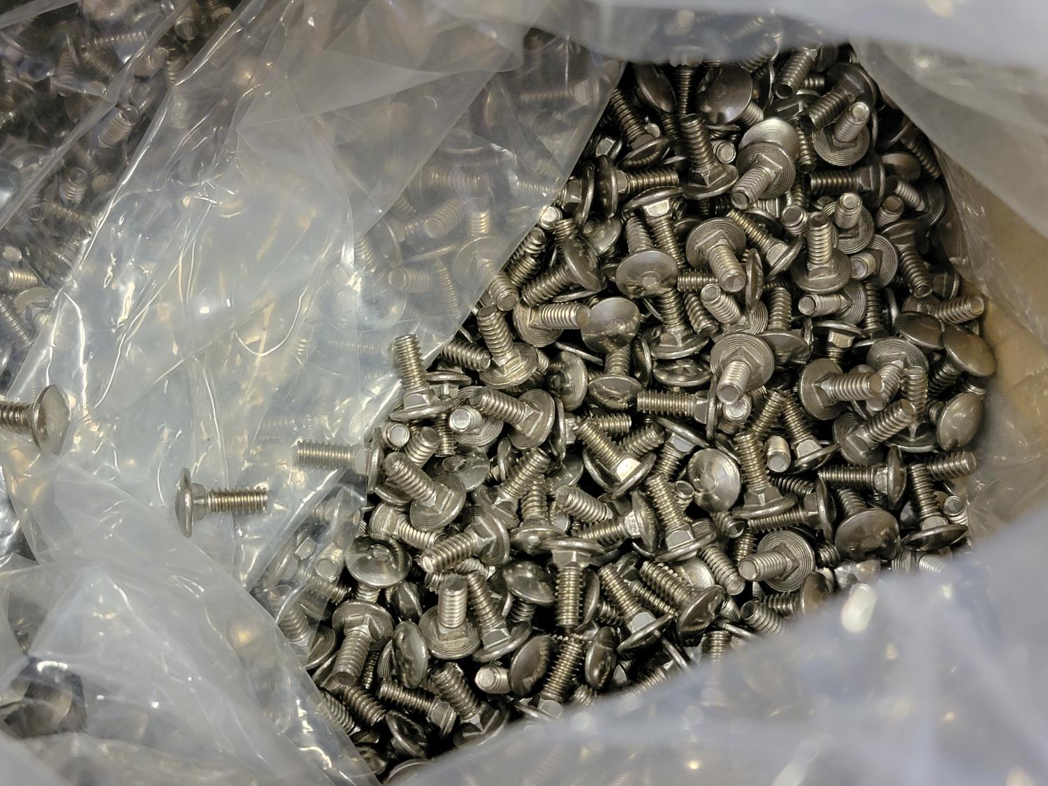 Fibre discs, #12 x 2 inch Phillips truss head tapping screws, 6 inch grinding wheels, 5 inch abrasive mop discs, 3/4 inch tipped cutter, carbides 2 inch ice cut bit, 3/4 inch x 3-1/4 inch flat head bolts, 1-1/4 inch x 6-1/2 inch hex bolts, 1-1/4 inch x 6 inch hex bolt, round head square neck bolts #10-24 x 1/2 inch, hex washer head wood screws, 1-1/4 inch push on seals