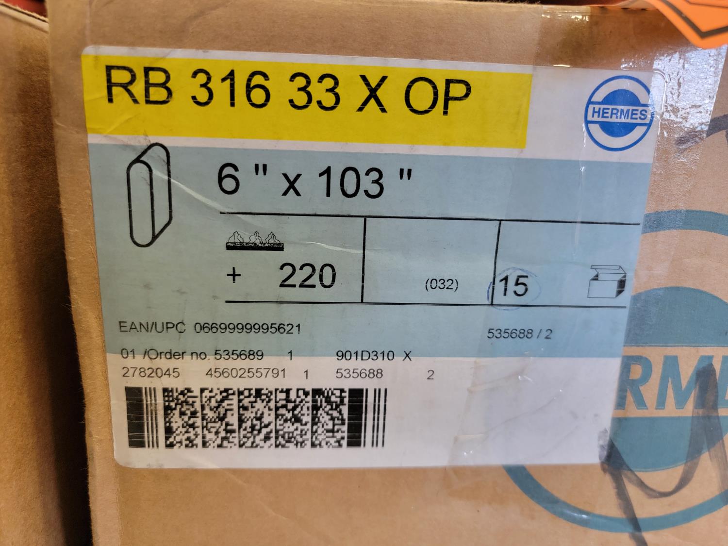 80E abrasive discs, 40E abrasive discs, 6 inch x 103 inch sanding bands, 16 inch x 2 inch sanding wheels, 1 inch x 8 inch square head bolts
