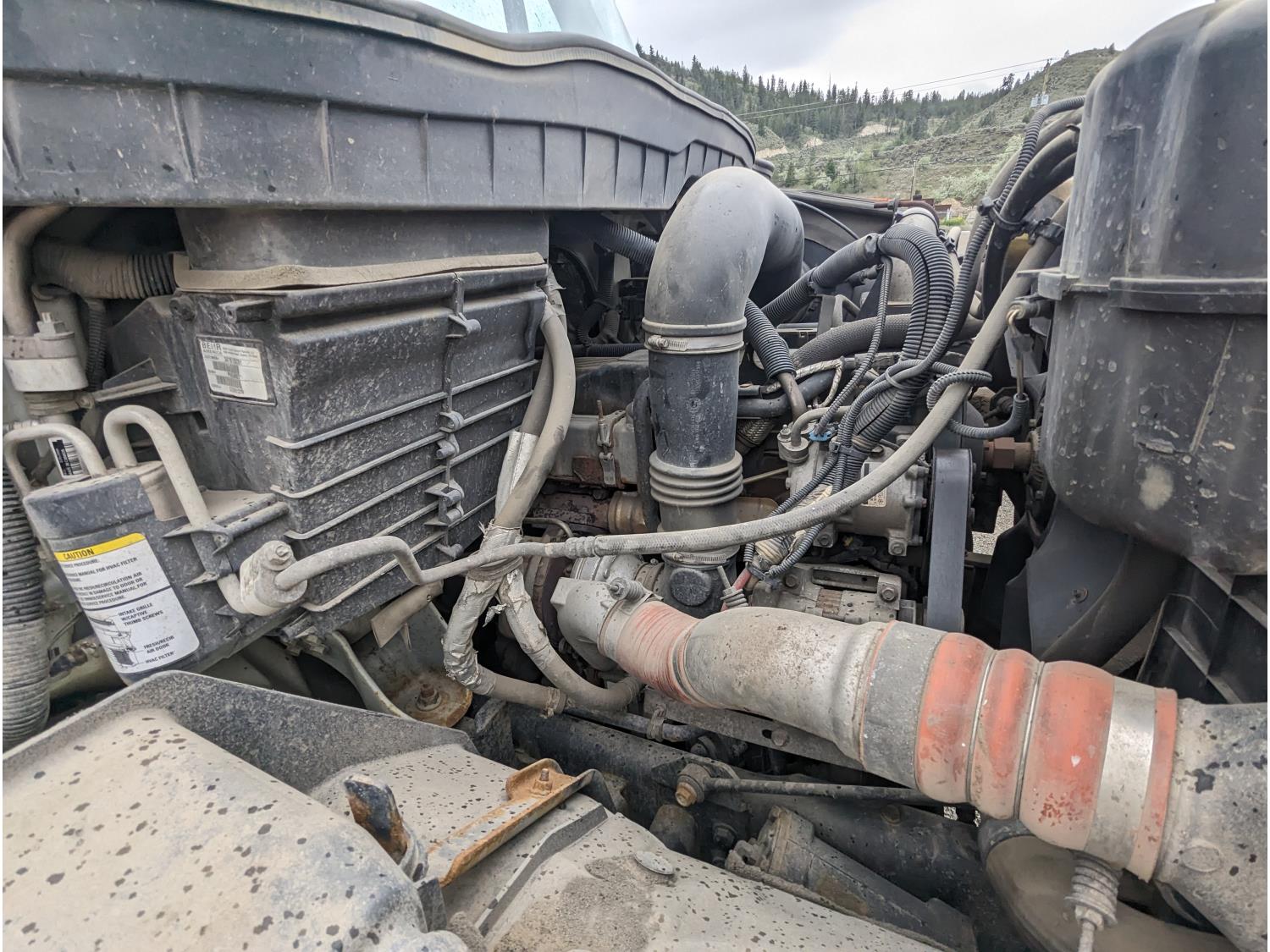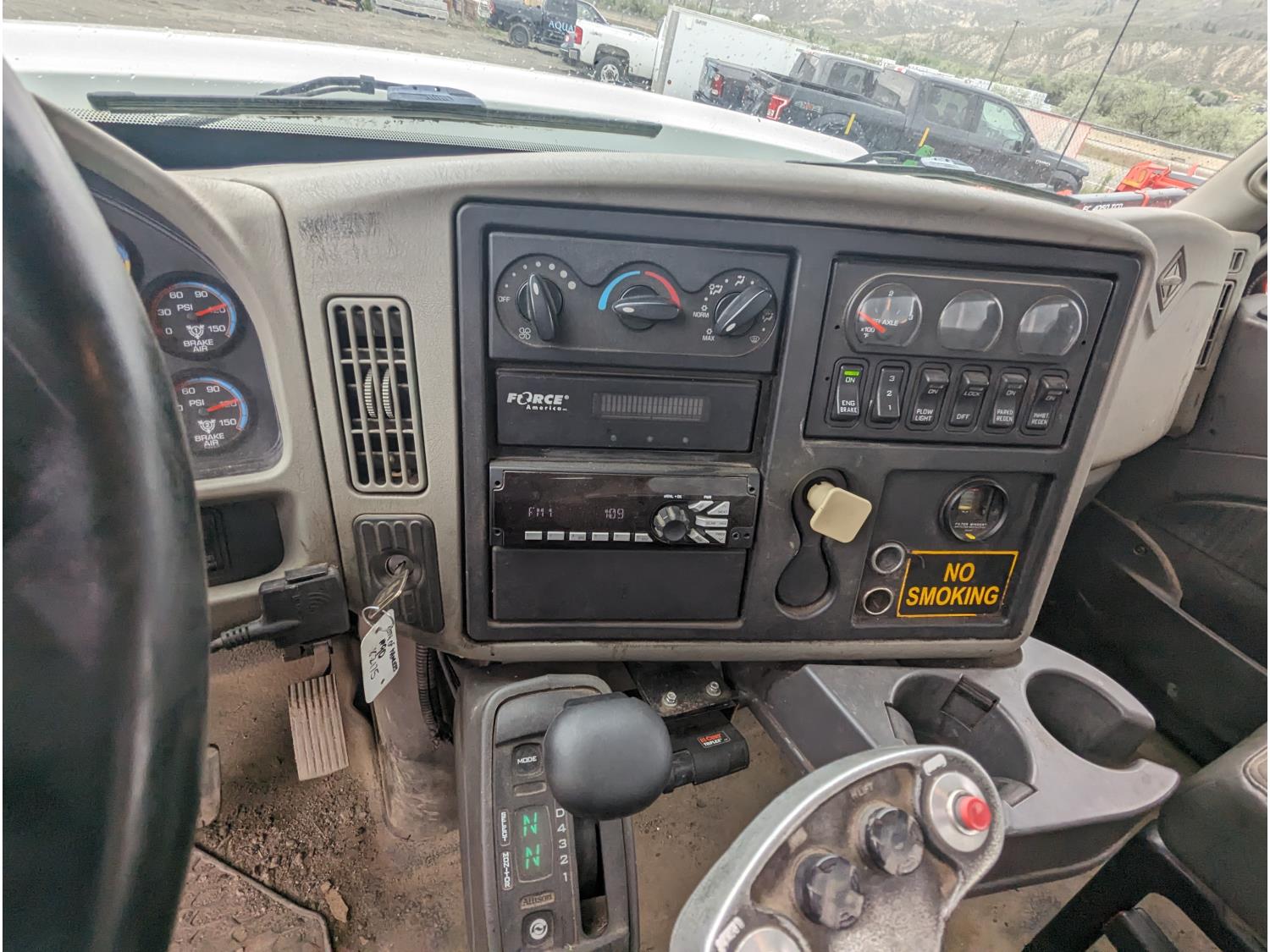 MaxxForce GDT255 7.6 6 cylinder 255 HP diesel engine, DEF required, engine brake, automatic transmission, A/C, air ride driver seat, 11 ft plow, roll tarp, spring suspension, 10,432 lb front axle, 23,000 lb rear axles, 179 inch WB, 315/80R22.5 front tires, 11R24.5 rear tires