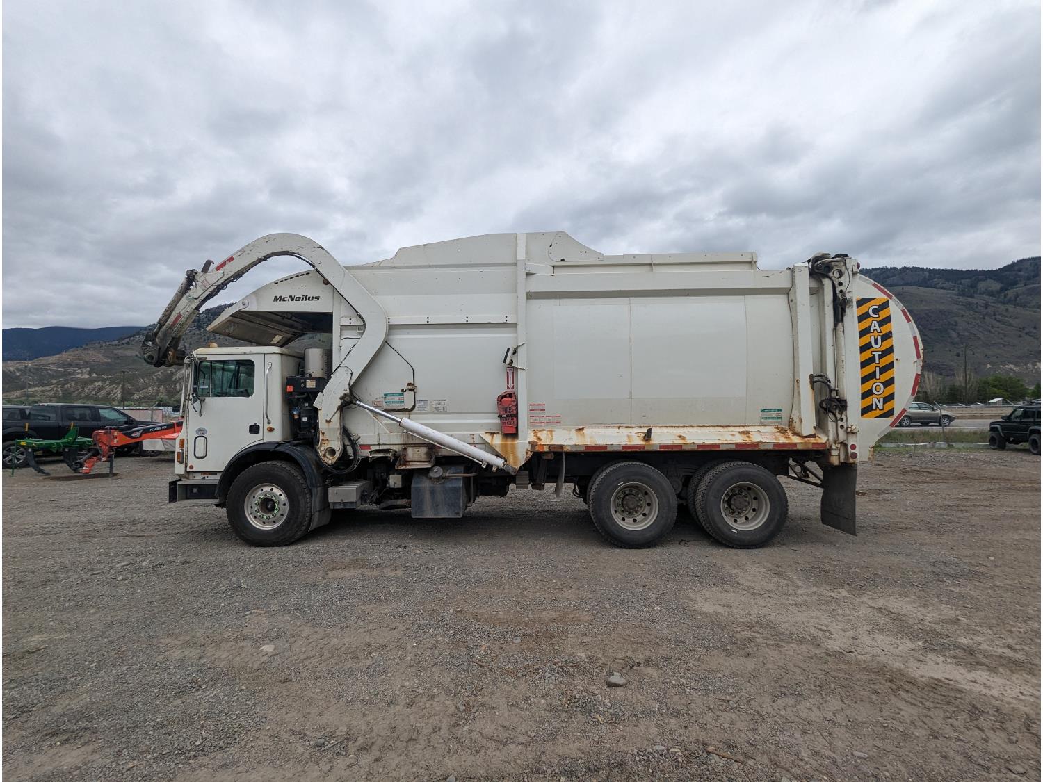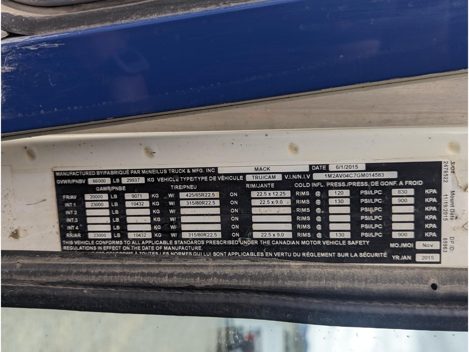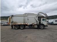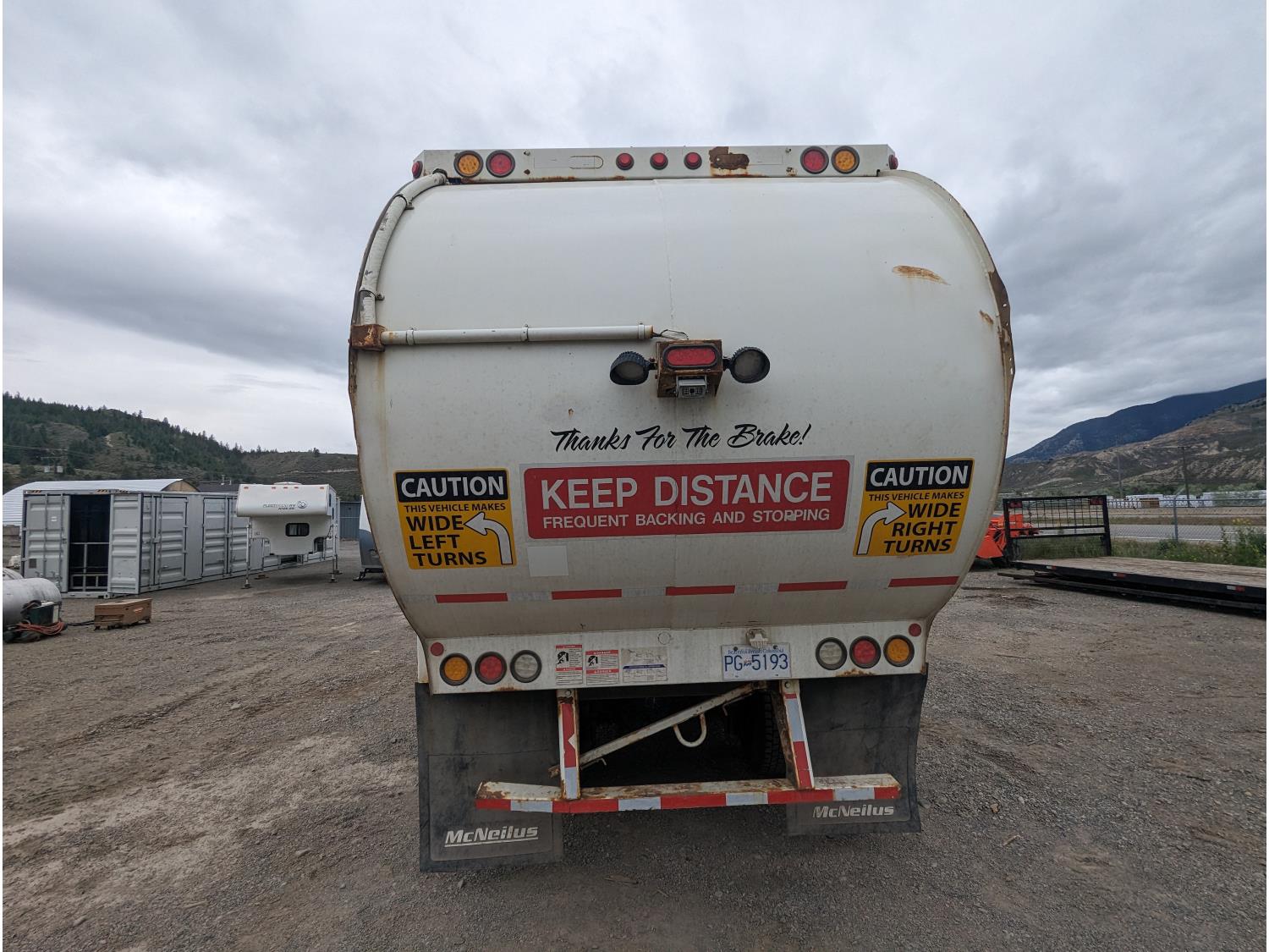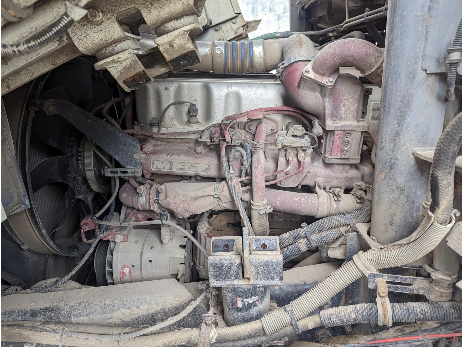Mack MP7 10.8 L 6 cylinder 335 HP diesel engine, DEF required, engine block heater, automatic transmission, A/C, cruise control, radio, CB radio, McNeilus front load, 4087, 21.41 Cubic Meter , spring suspension, 20,000 lb front axle, 46,000 lb rear axles, diff lock, 240 inch WB, all aluminum wheels, 425/65R22.5 front tires, 315/80R22.5 rear tires
