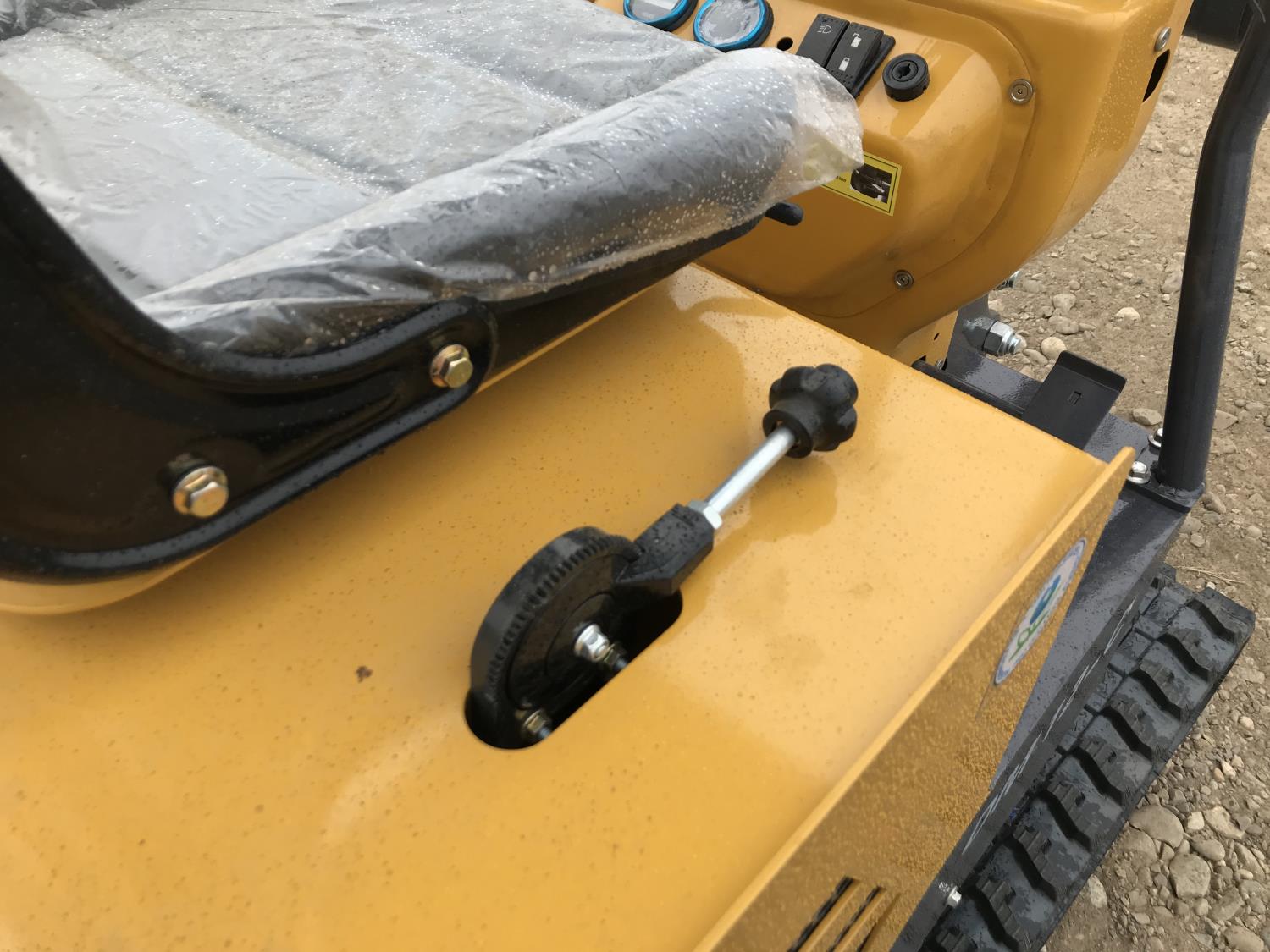 Open station, gas engine, 17 inch dig bucket, manual coupler, hydraulic thumb, 31 inch stick, backfill blade, 7 inch rubber tracks