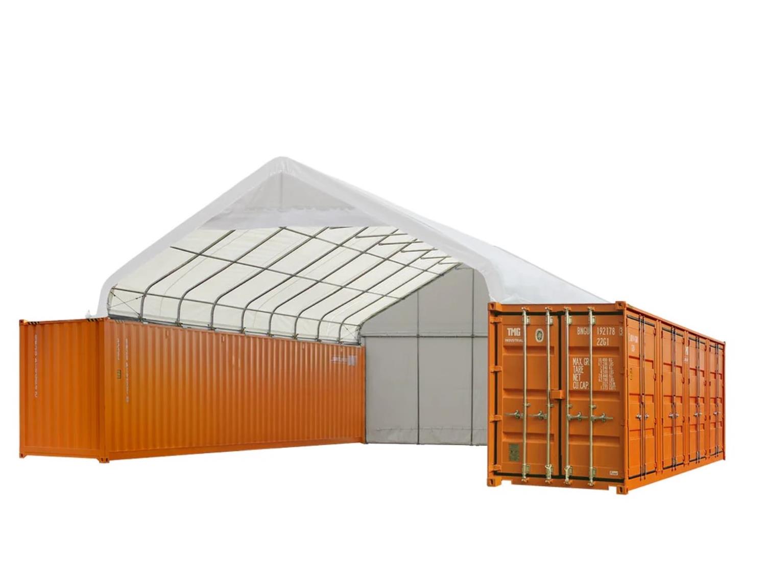 173 TMG Industrial ST2041CVF 30 Ft X 40 Ft PVC Fabric Container Peak Roof Shelter (Unused)