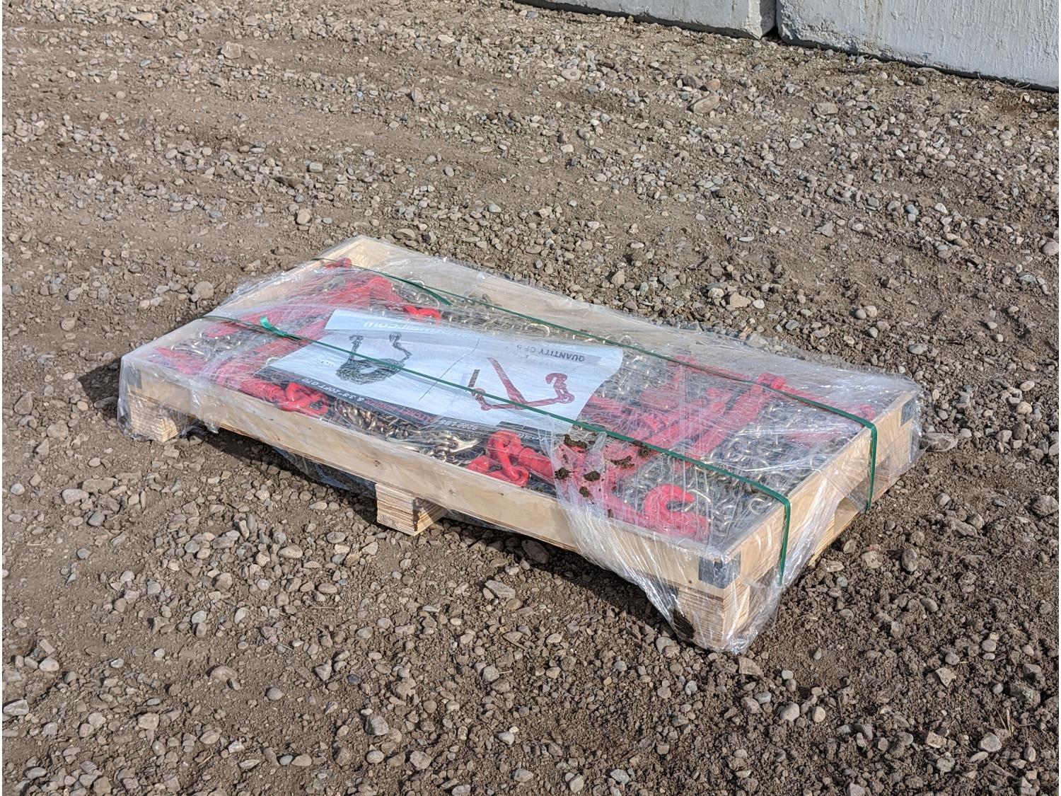 122 (5) Greatbear 9200 lb Ratchet Binder and (10) 3/8 Inch X 20 Ft Chains (Unused)