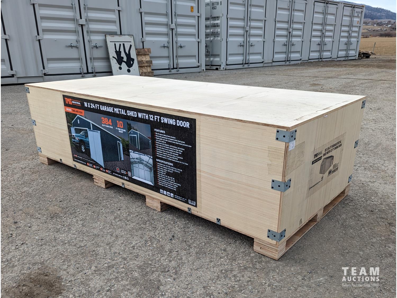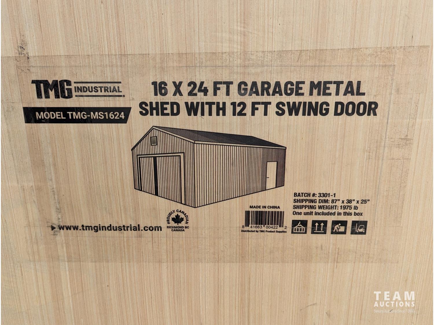 161 TMG Industrial MS1624 16 Ft X 24 Ft Metal Shed Garage (Unused)