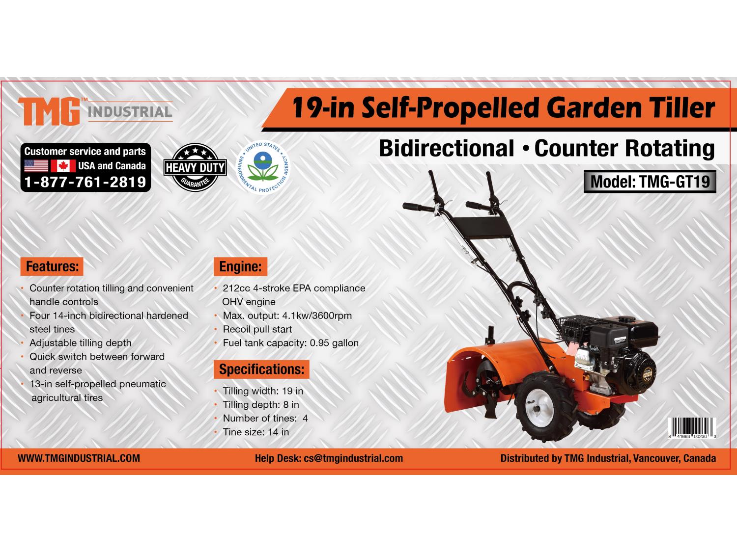 407 TMG Industrial TMG-GT19 19 Inch Self-Propelled Garden Rotary Tiller (Unused)