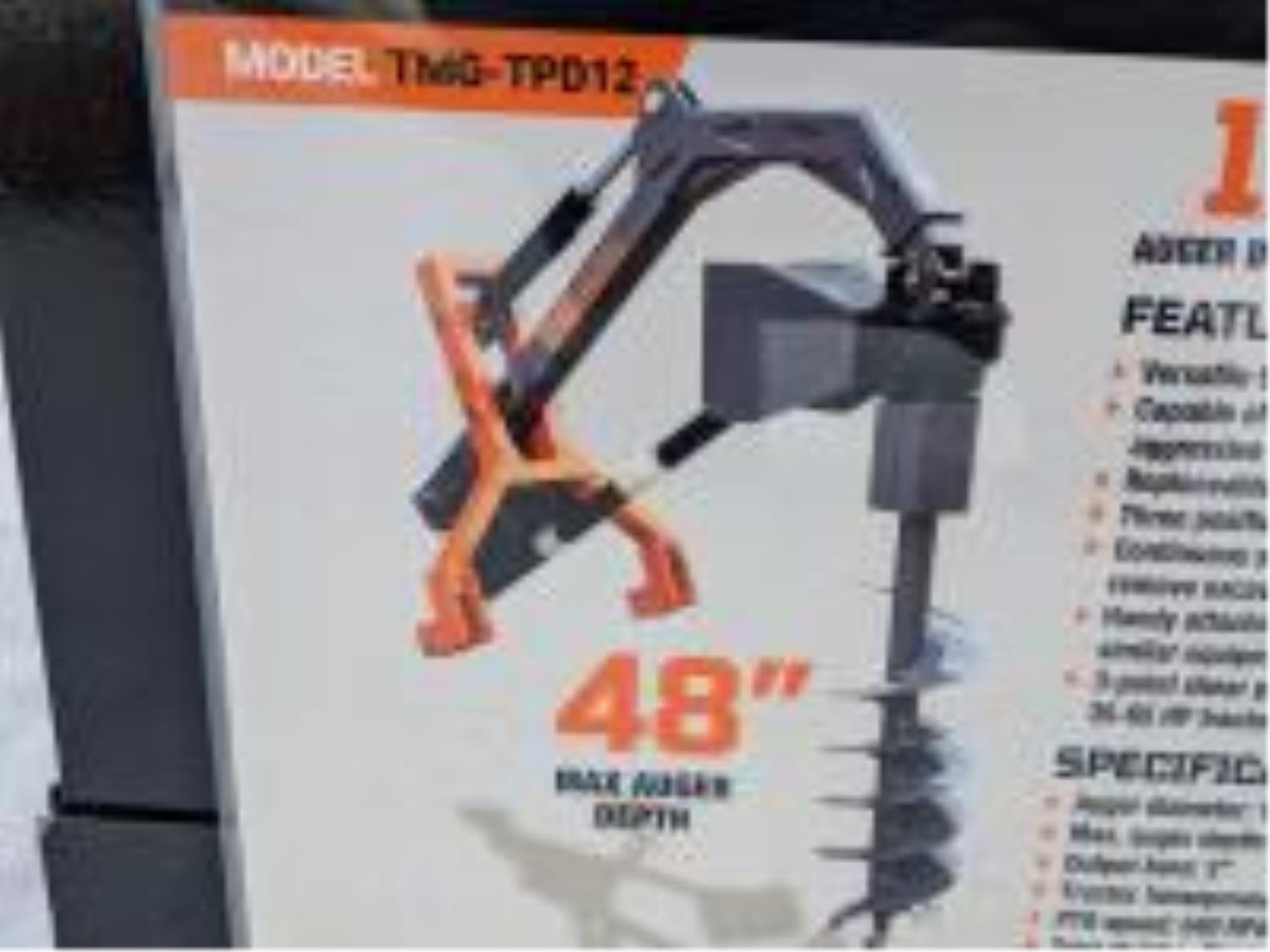 320 TMG Industrial TPD12 48” 3 PT Hitch Hydraulic Assist Post Hole Digger (Unused)