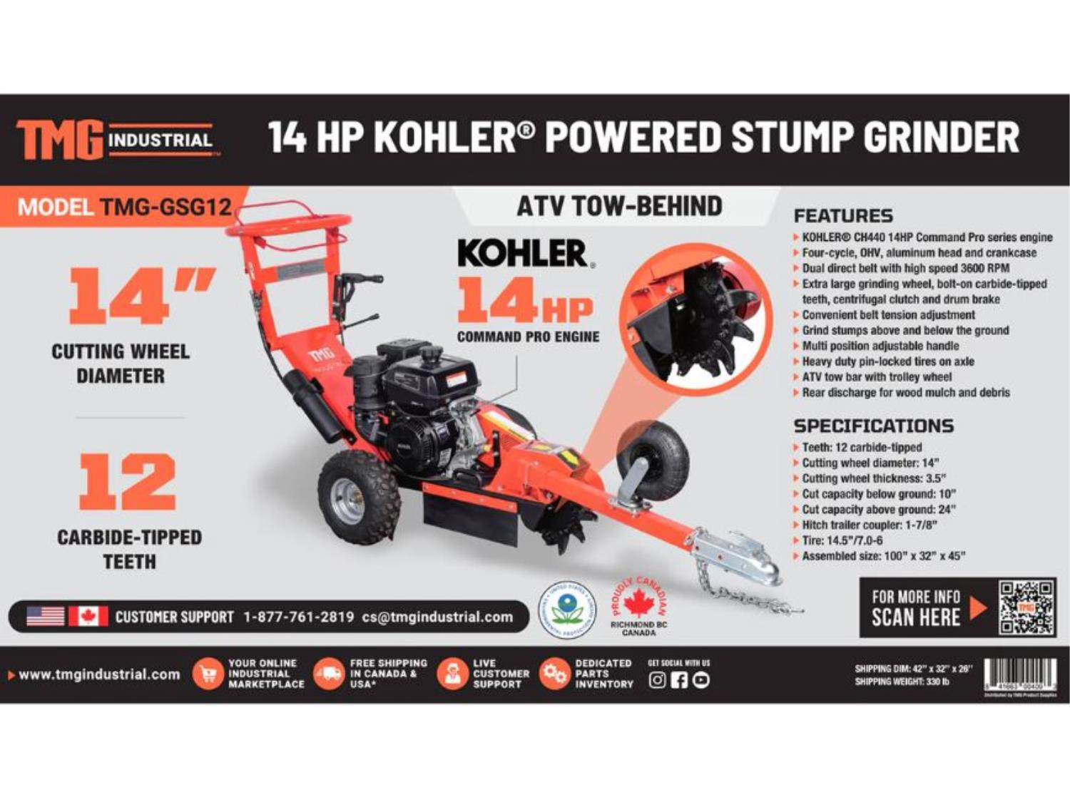 309 TMG Industrial GSG12 Walk Behind Kohler Powered Stump Grinder (Unused)