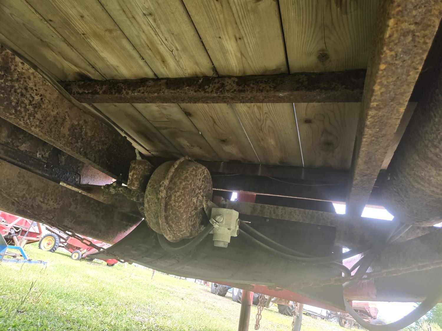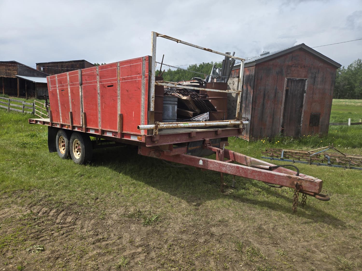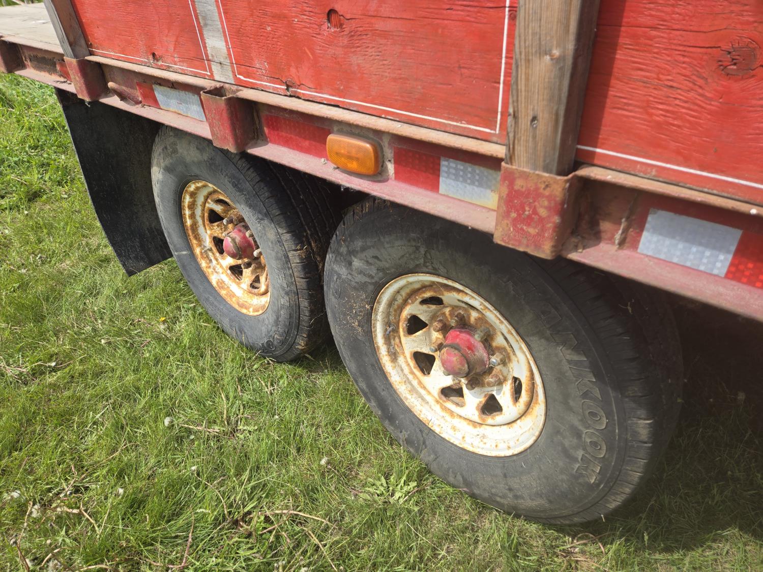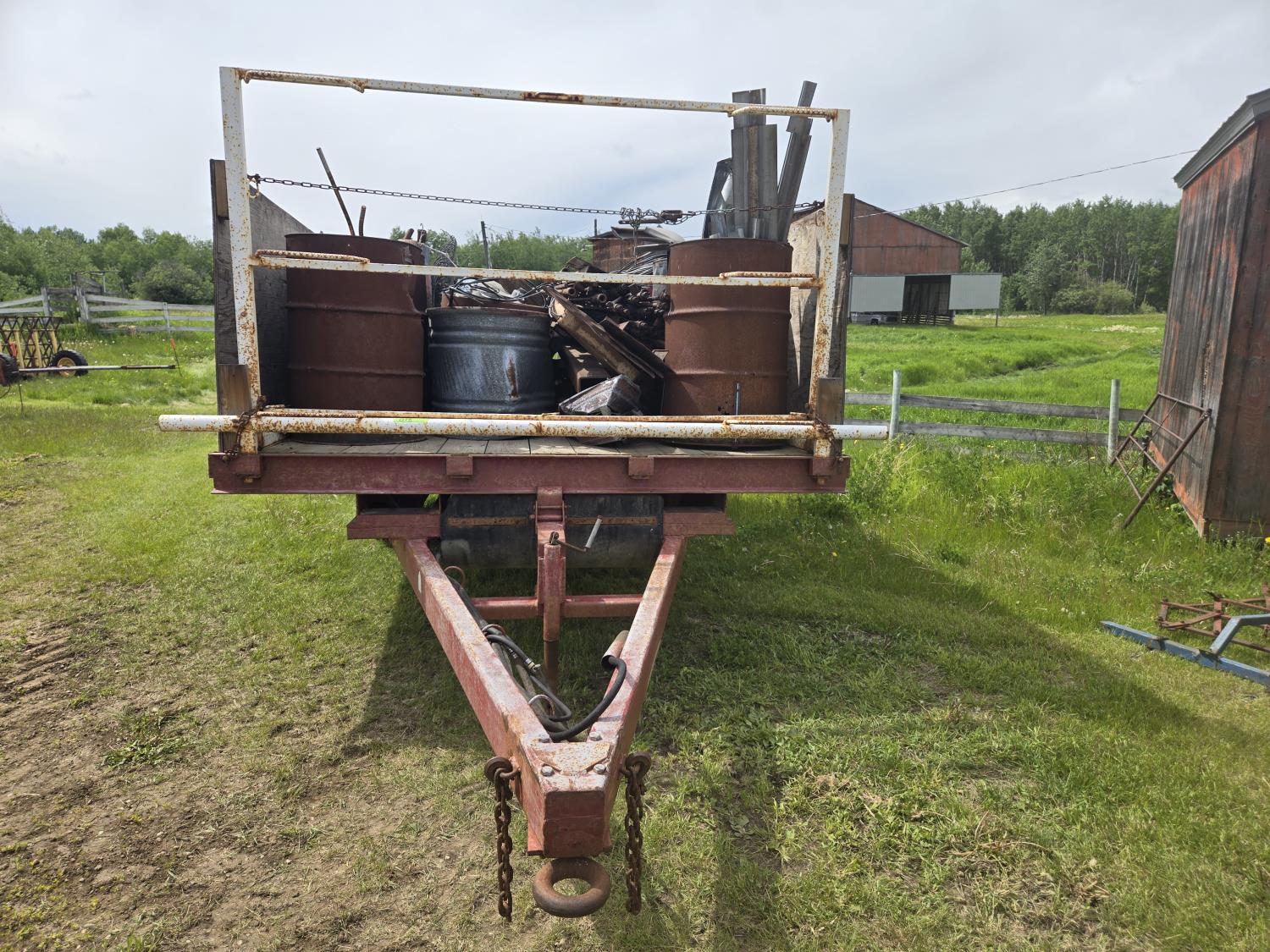 7000 lb axles, pintle hitch, hoist requires external hydraulics, hydraulic brakes, spring suspension, 235/85R16 tires, includes sucker rod and scrap metal