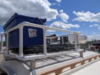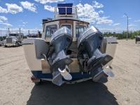 7 ft 10 inch w x 50 inch h, registered tonnage: 2,600 lb, (2) Yamaha 50HP outboard motors, Humminbird 1157C GPS fishing system, JRC Radar, downriggers, rods, reels, Scotty crab puller, nets, crab traps and line, Coleman cooler, tires: 205/75R14