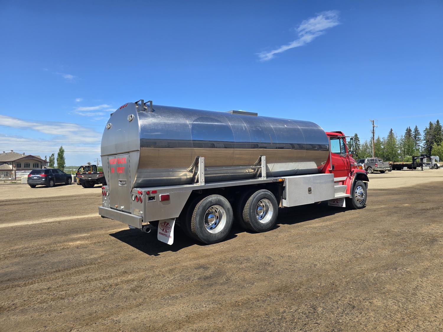 Caterpillar 3126 7.2 L 6 cylinder 250 HP diesel engine, Eaton-Fuller 8LL manual transmission, A/C, cruise control, air ride driver seat, Technova Inc 16000 liter stainless steel tank, insulated with s/s wrap, water level gauges, (2) rear discharges (1) electric (1) manual, rear heated cabinet, top load manhole, honda gx2000 gas powered pump w/ hoses & accessories, Airliner air ride suspension, 18,000 lb front axle, 40,000 lb rear axles, 216 inch WB, all aluminum wheels, 11R22.5 tires