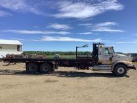 Caterpillar C12 engine, Jake Brake, 18 speed transmission, 12000 lb front axle, 40000 rears, full lockers, air ride suspension, rear hitch, Cancade 17 bale self loading deck, all aluminum wheels, 445/65R22.5 front, 12.00R22.5 rear tires