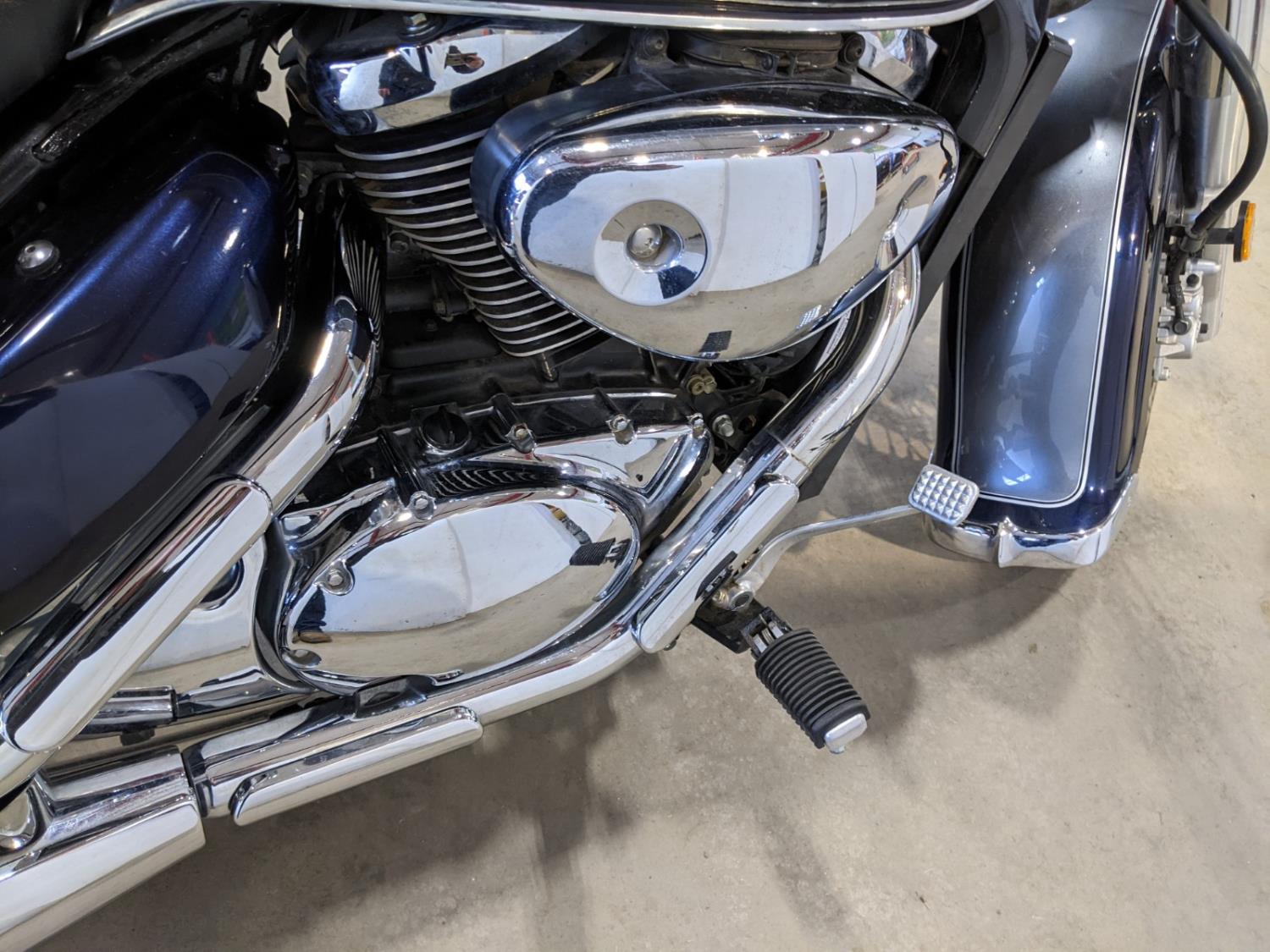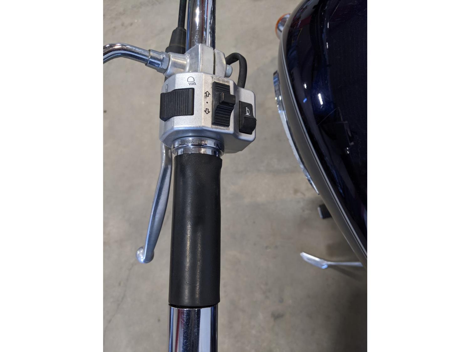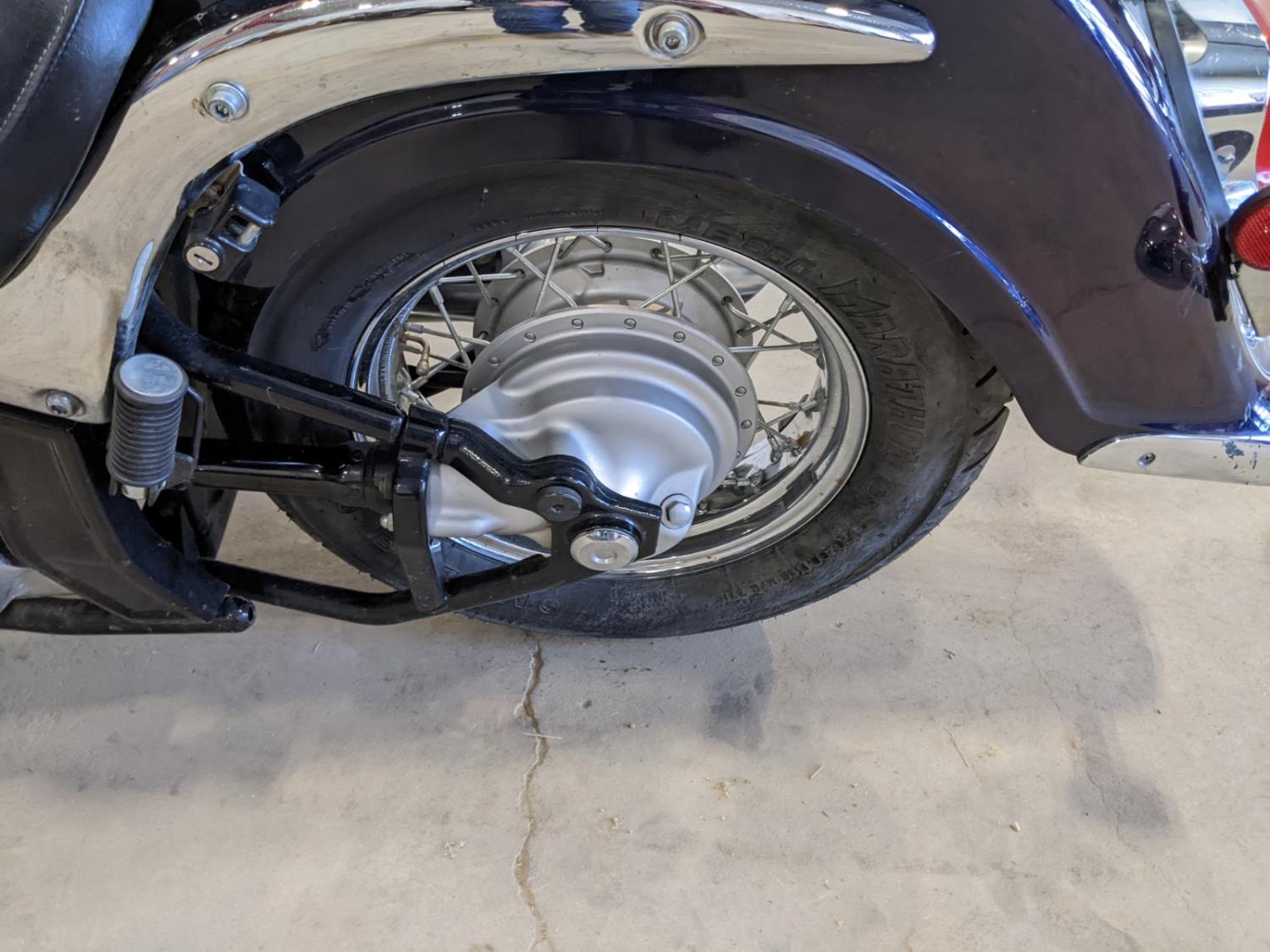 new batter, two tone blue and silver paint, front tire 130/90-16 M/C, rear tire 170/80 B 15 M/C