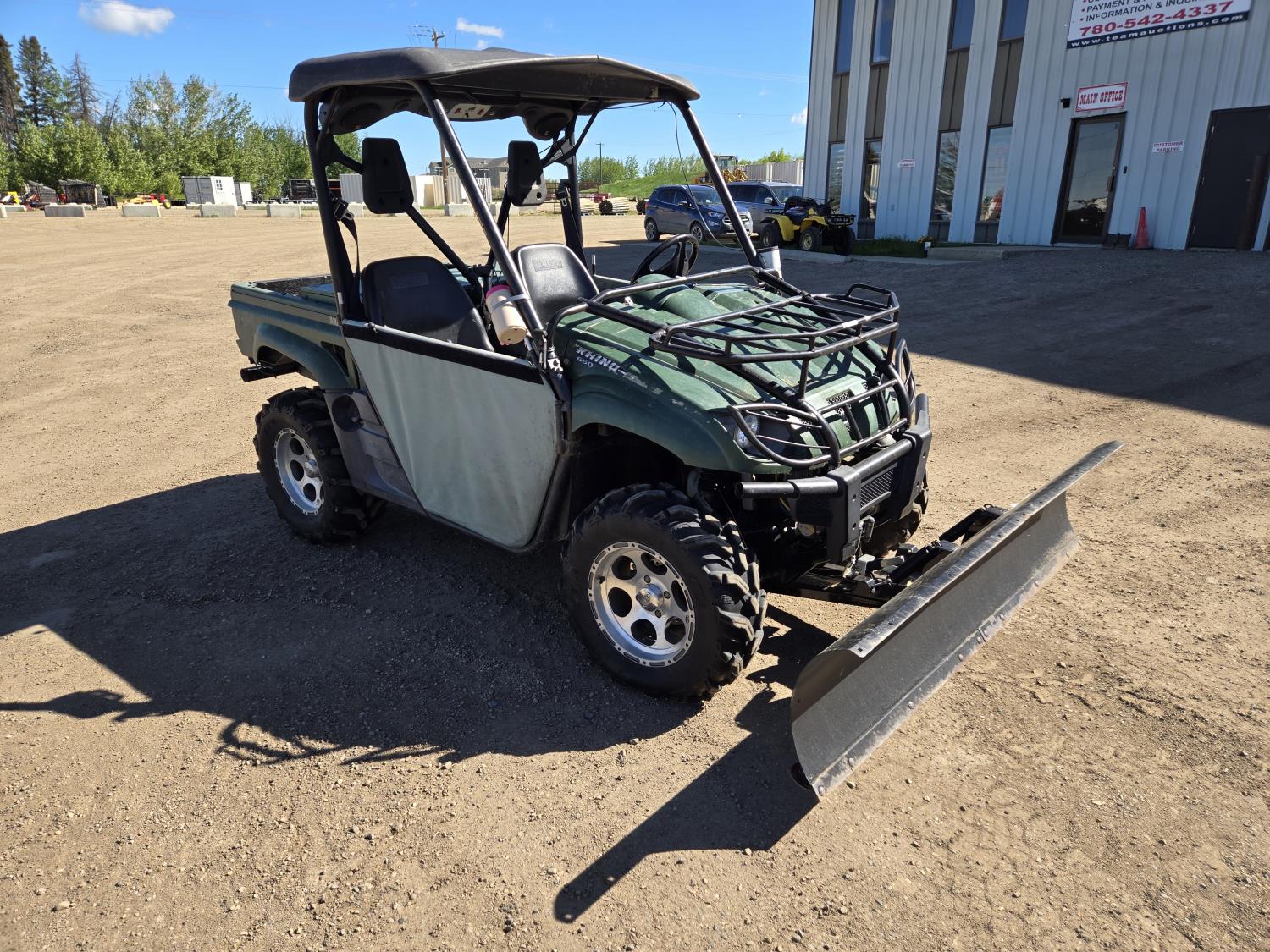 660 cc engine, CVT transmission, Hi/Lo range, electric shift, reverse, 72 inch front blade, receiver hitch, manual dump box, front winch, independent suspension, comes with (2) 26X10.0-12 on rims, (1) 26X12-12 on rim (1) extra 12" rim, 27X9R14 front tires, 27X11R14 rear tires