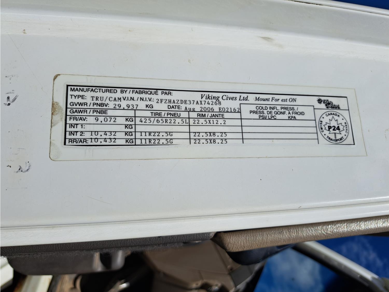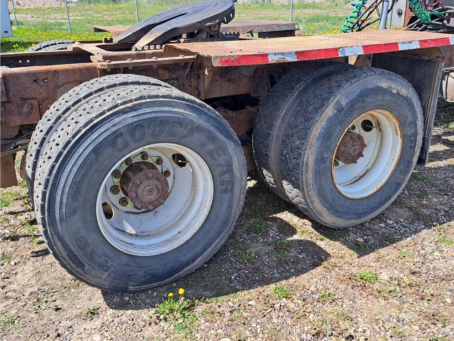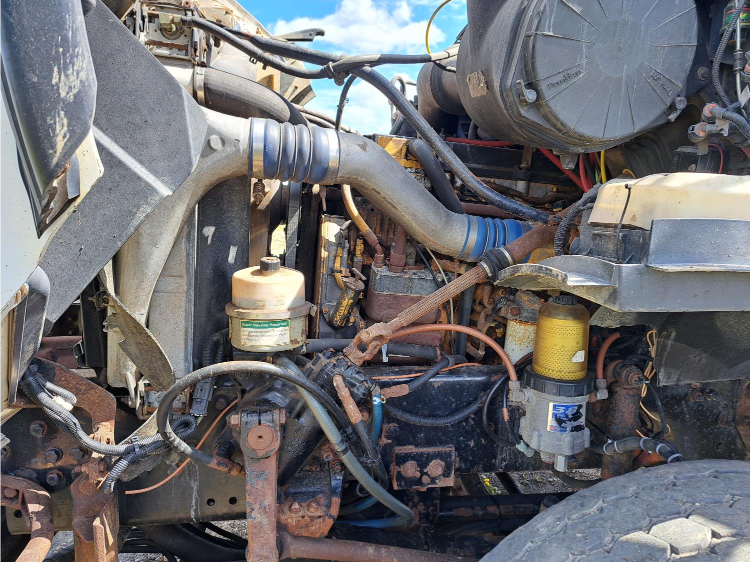 Caterpillar C15 TWIN TURBO 15 6 cylinder diesel engine, engine brake, Eaton Fuller 18 speed manual transmission, A/C, cruise control, air ride driver seat, radio, hydraulic wet kit, beacons, air ride cab, 20,000 lb front axle, 46,000 lb rear axles, diff lock, 208 inch WB, 425/65R22.5 front tires, 11R22.5 rear tires