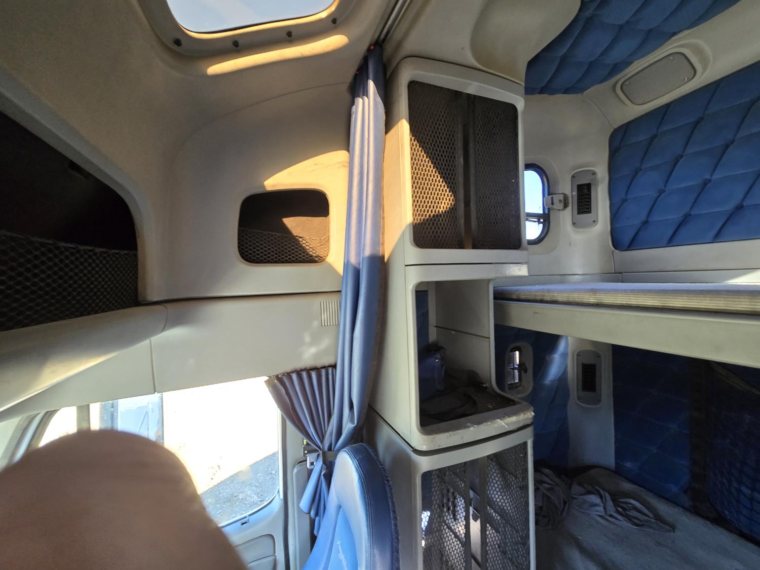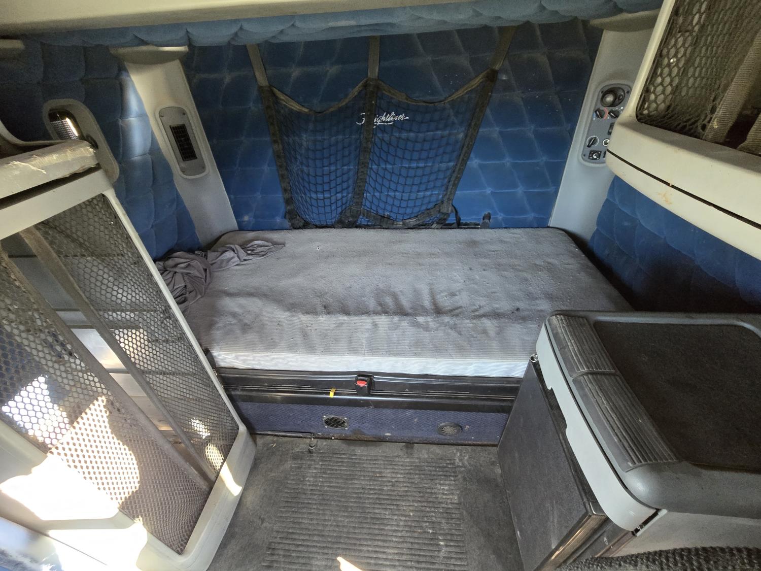 Detroit 60 SERIES 6 cylinder engine, engine heater, Eaton Fuller 18 speed manual transmission, high rise 66 inch sleeper, fridge, bunk beds, A/C, air ride driver seat, radio, air ride cab, P/L, P/M, air ride suspension, 12,000 lb front axle, 46,000 lb rear axles, full lockers, 234 inch WB, aluminum front wheels, 11R24.5 front tires